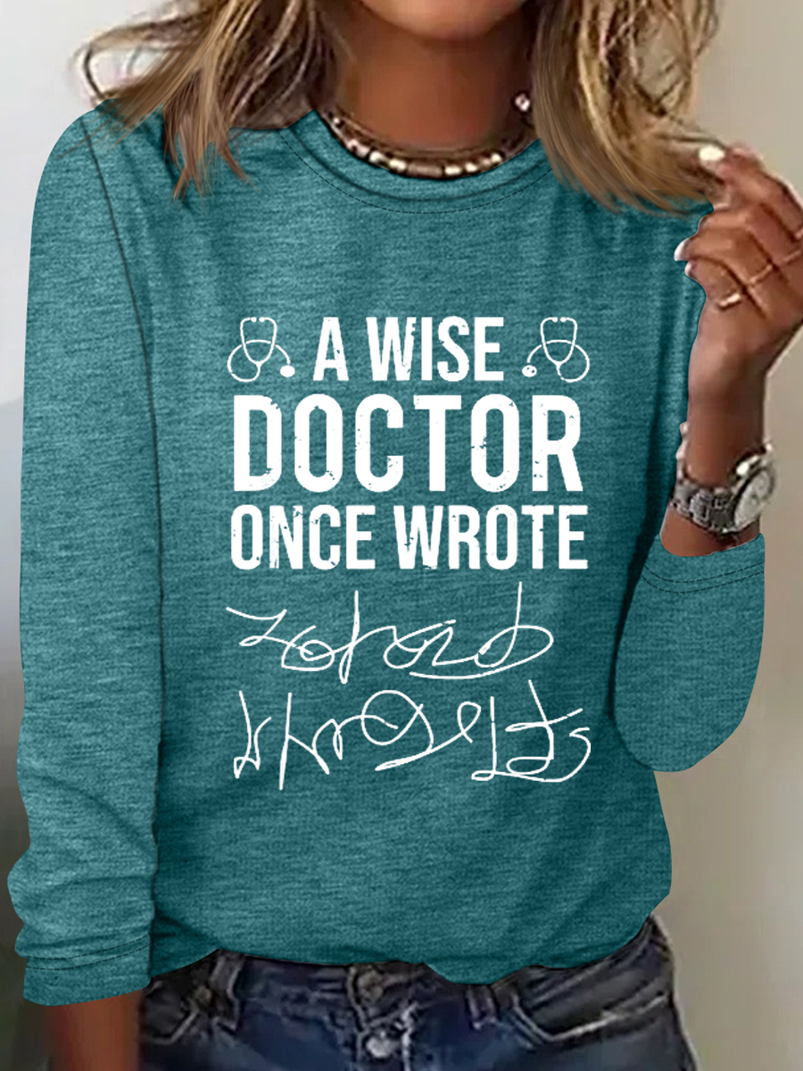 A Wise Doctor Once Wrote Medical Doctor Handwriting Funny Cotton-Blend Casual Text Letters Shirt