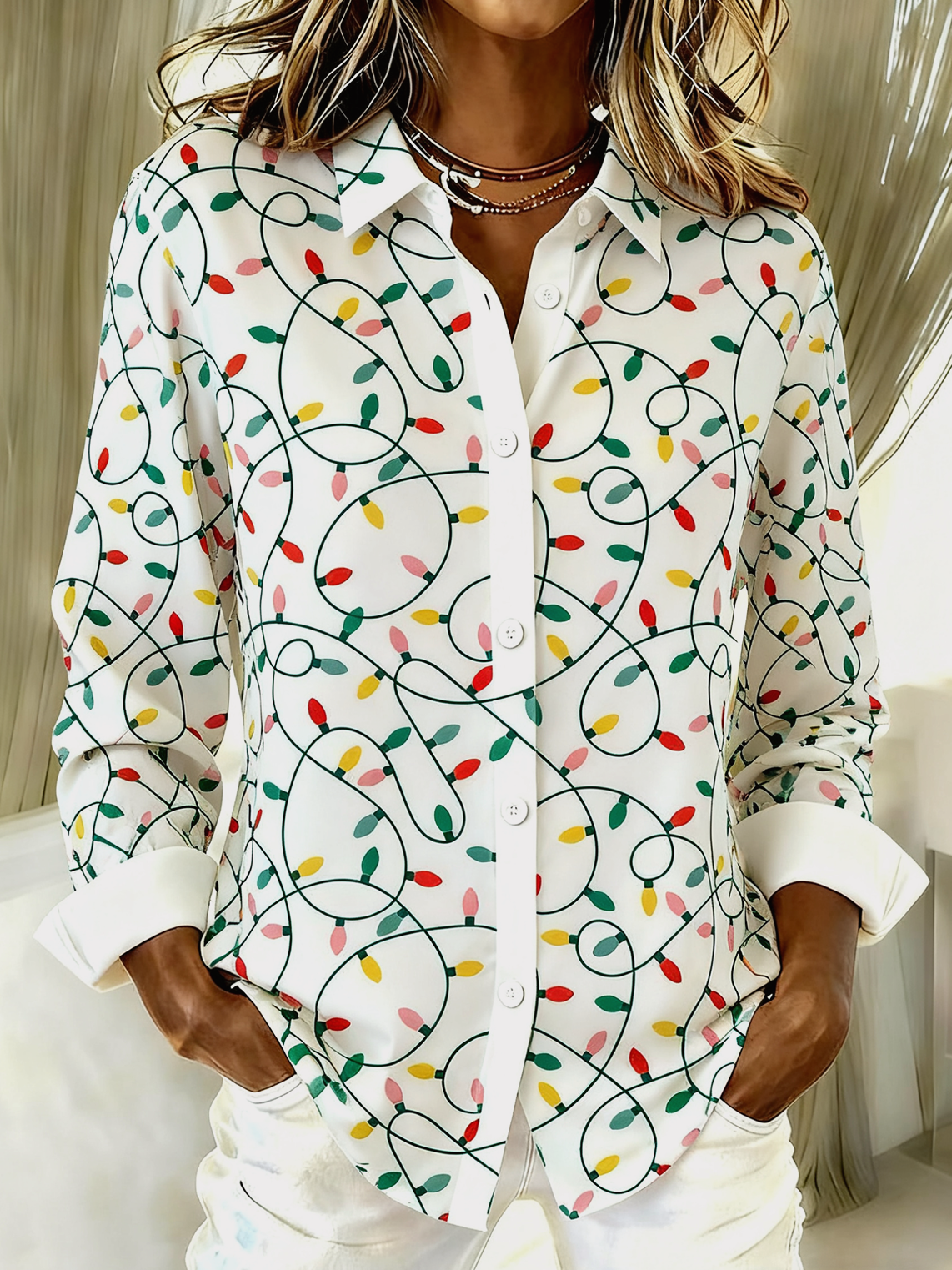 Loose Casual Christmas Shawl Collar Shirt