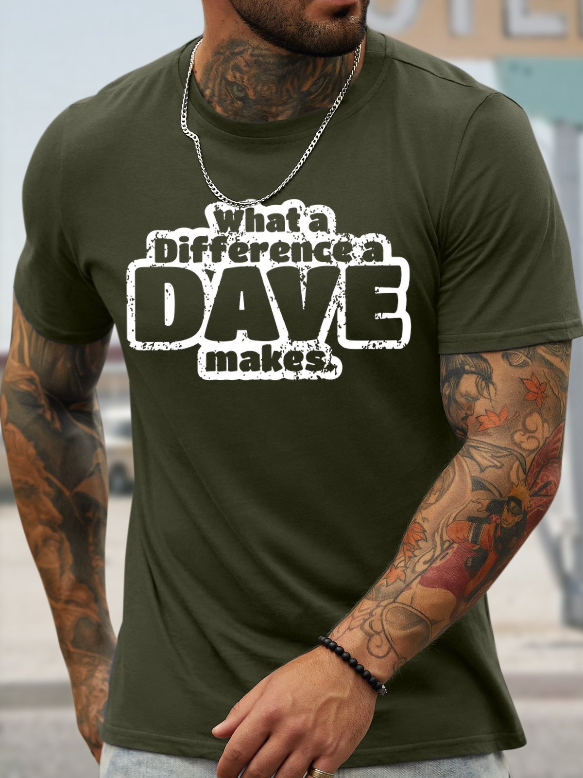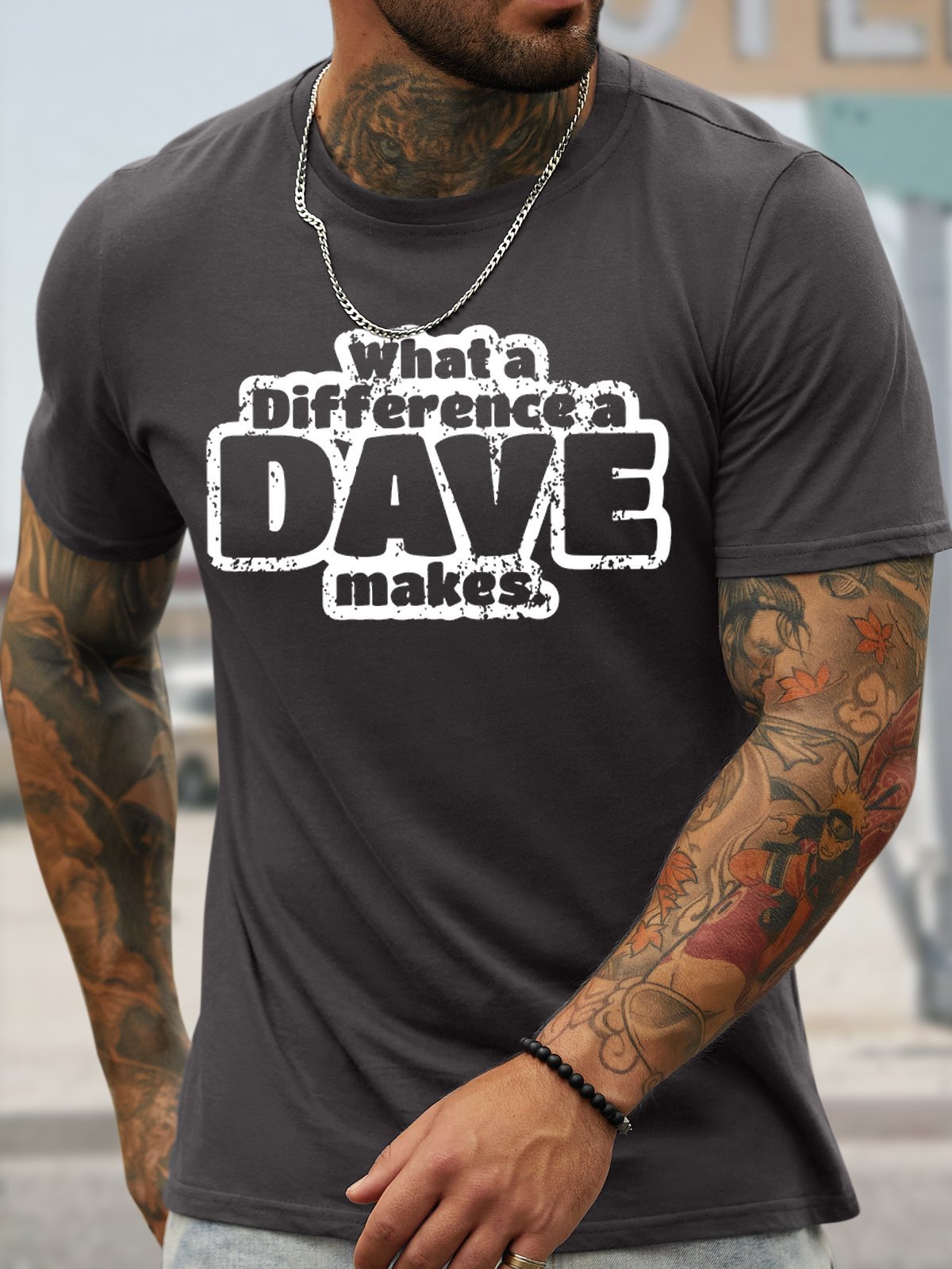 Men's Funny What A Difference A Dave Makes Graphic Printing Cotton Casual T-Shirt