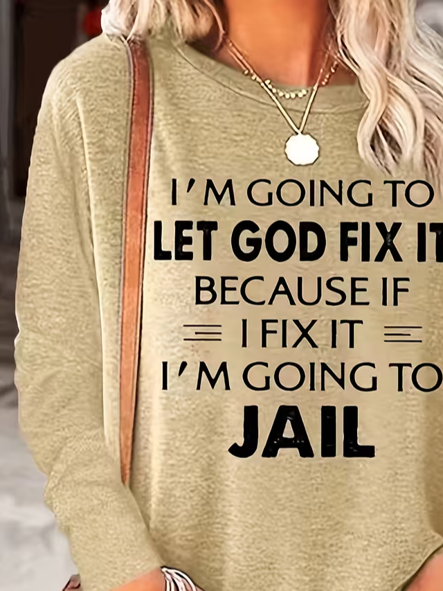 Women's Long Sleeve T-shirt Spring/Fall Khaki Text Letters Printing Jersey Crew Neck Daily Going Out Casual Top