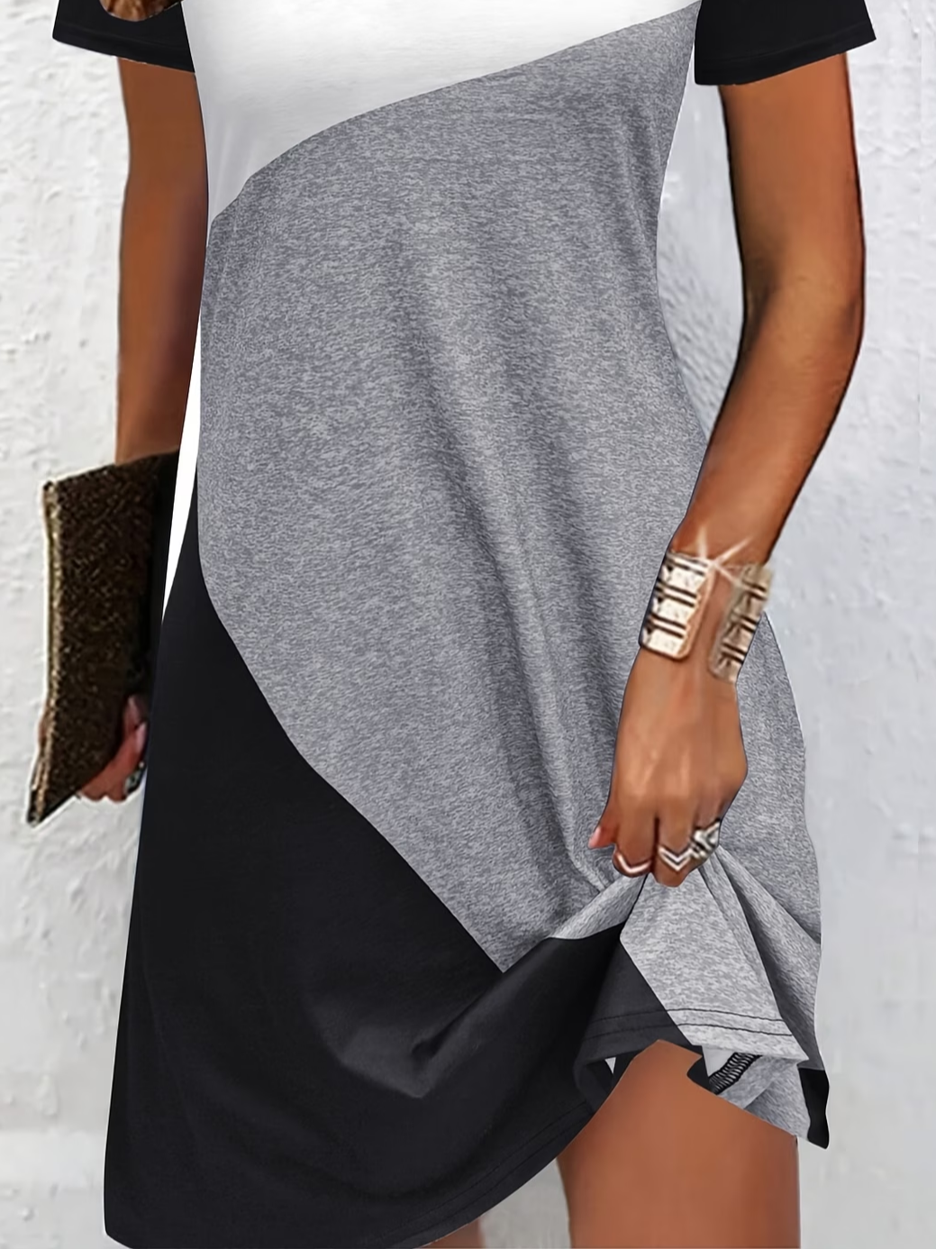 Women's Short Sleeve Summer As Picture Multicolor Block Printing Crew Neck Daily Going Out Casual Midi A-Line T-Shirt Dress Dress