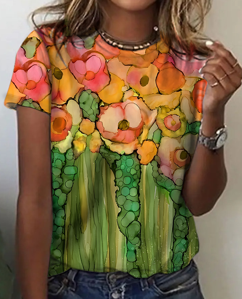 Women's Artistic Floral Illustration Print Cotton T-Shirt