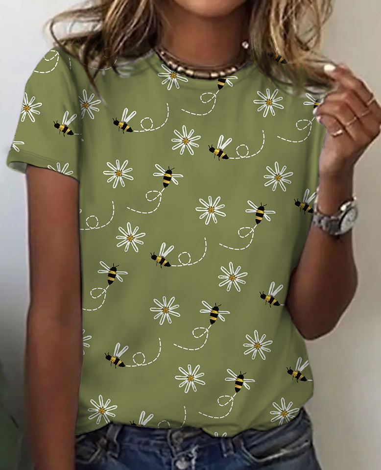 Women's Vintage Bohemian Floral Print Cotton T-Shirt