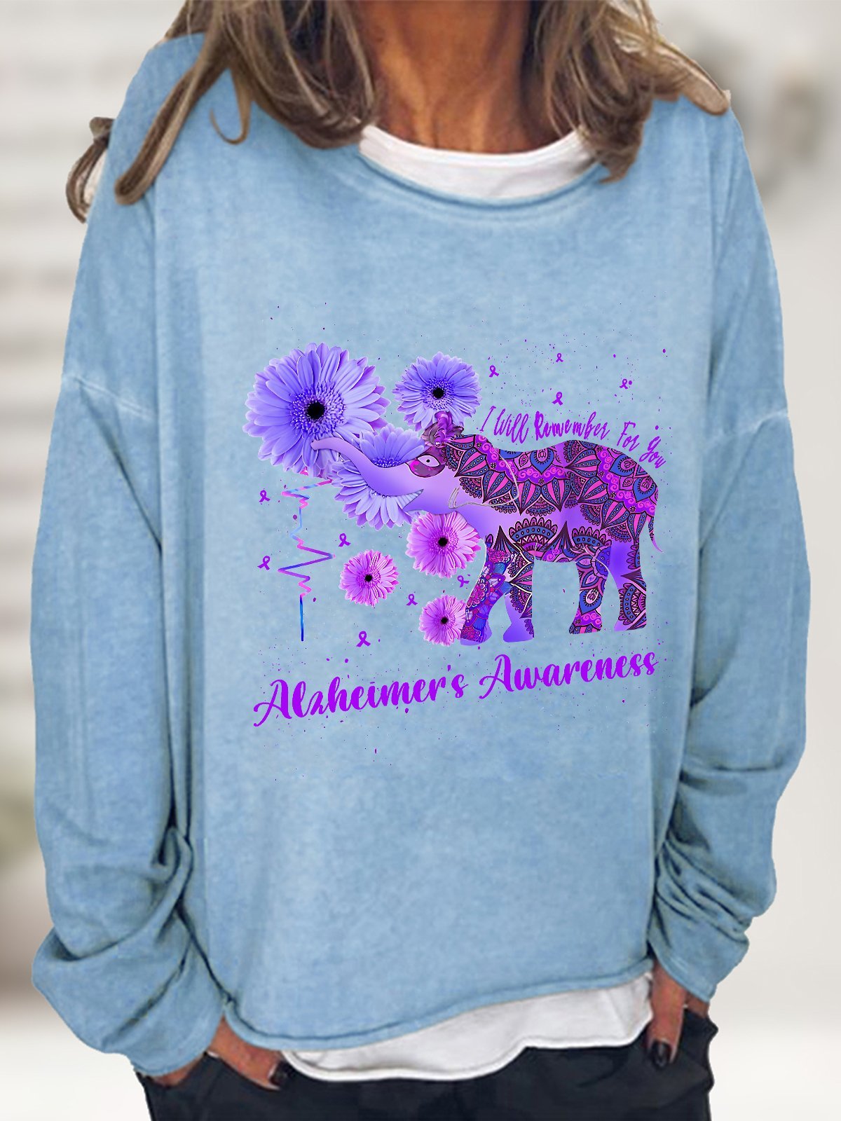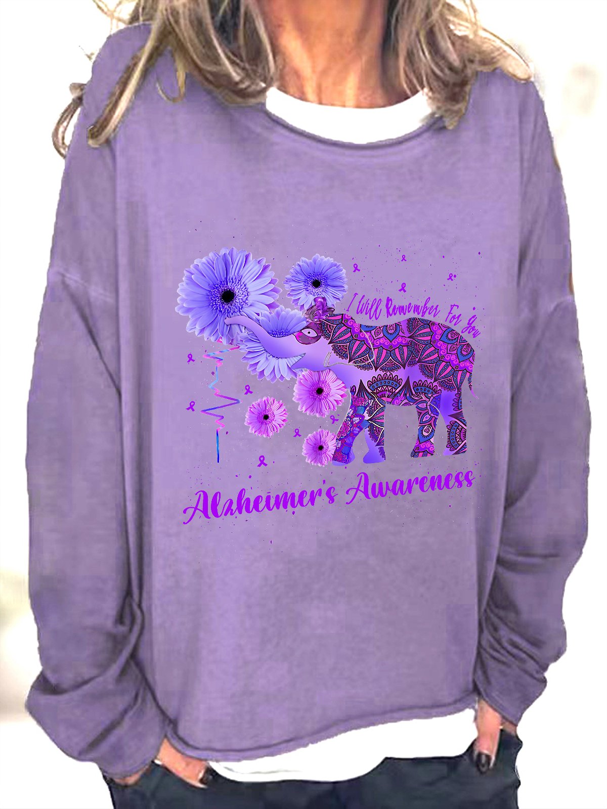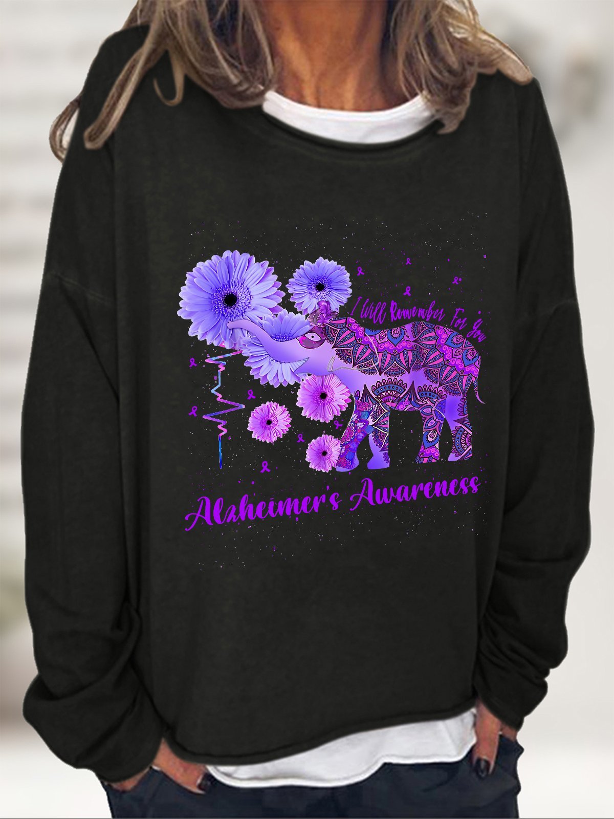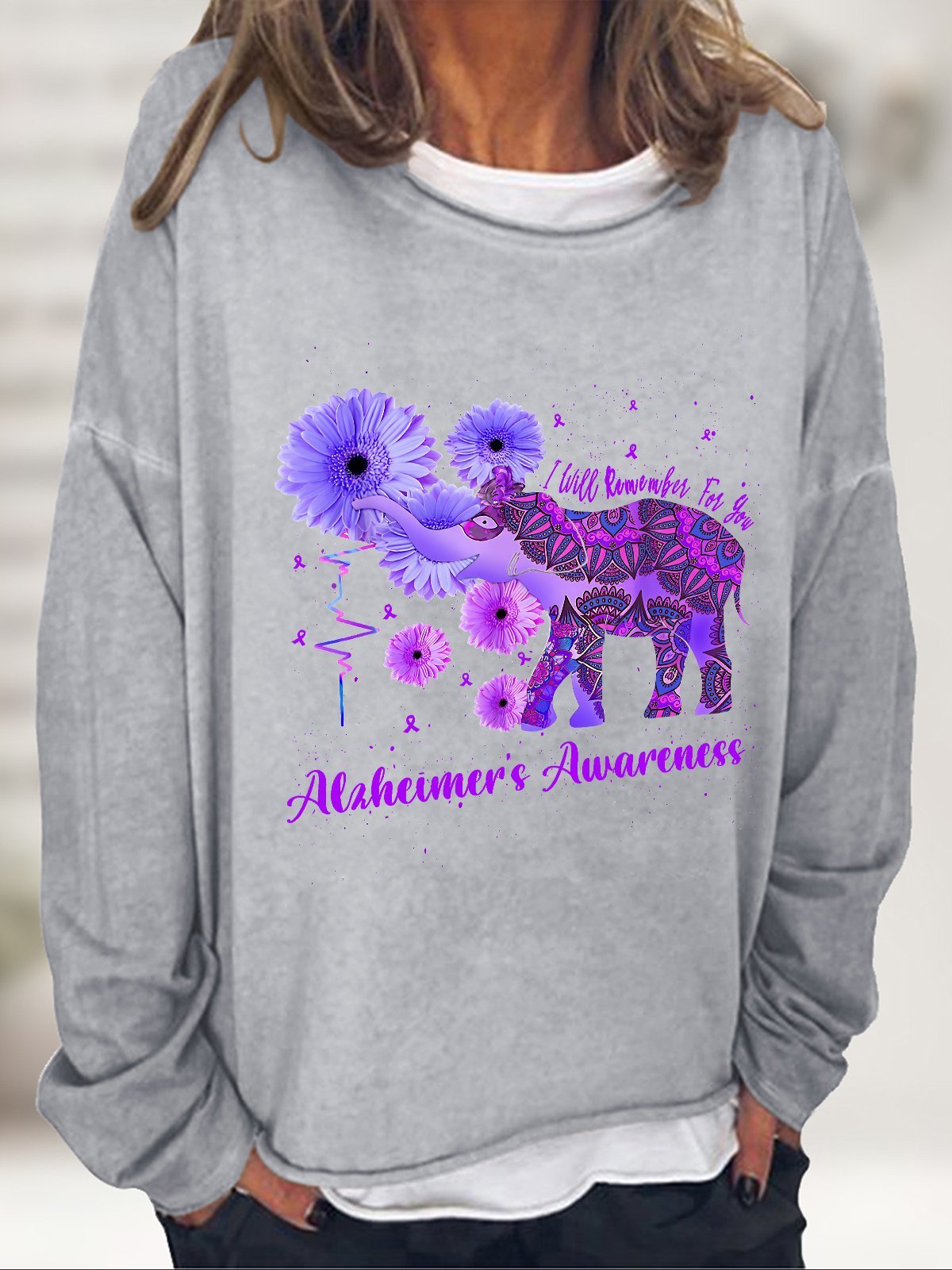 Alzheimer's Awareness Remember For You Ethnic Elephant Casual Sweatshirt