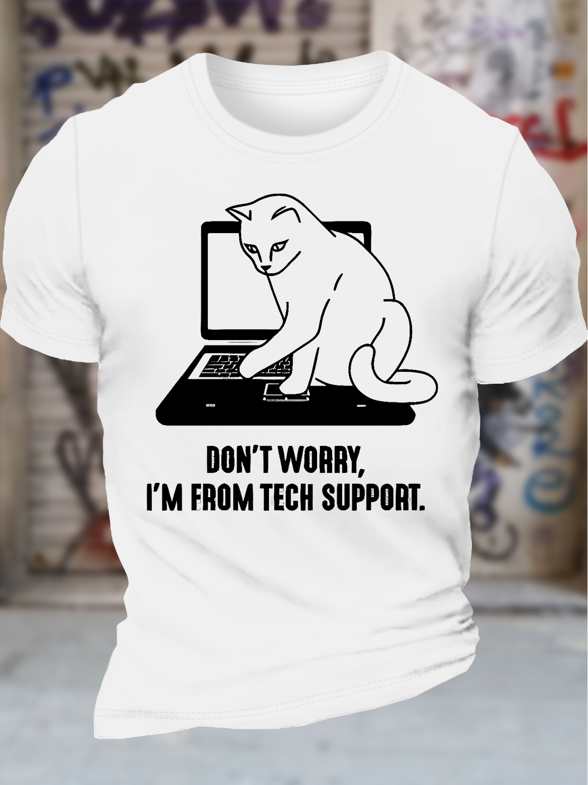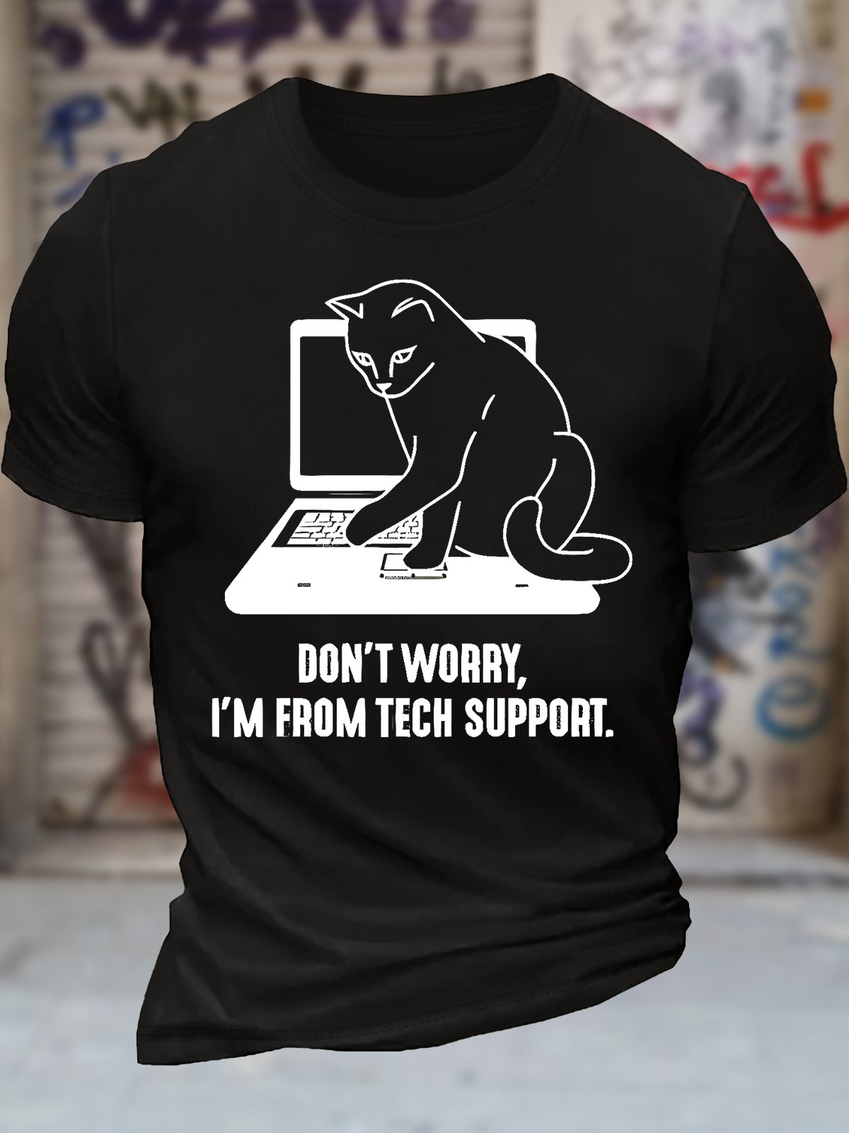 Men's Don't Worry I'm From Tech Support Funny Cat Graphic Printing Text Letters Cotton Crew Neck Casual T-Shirt