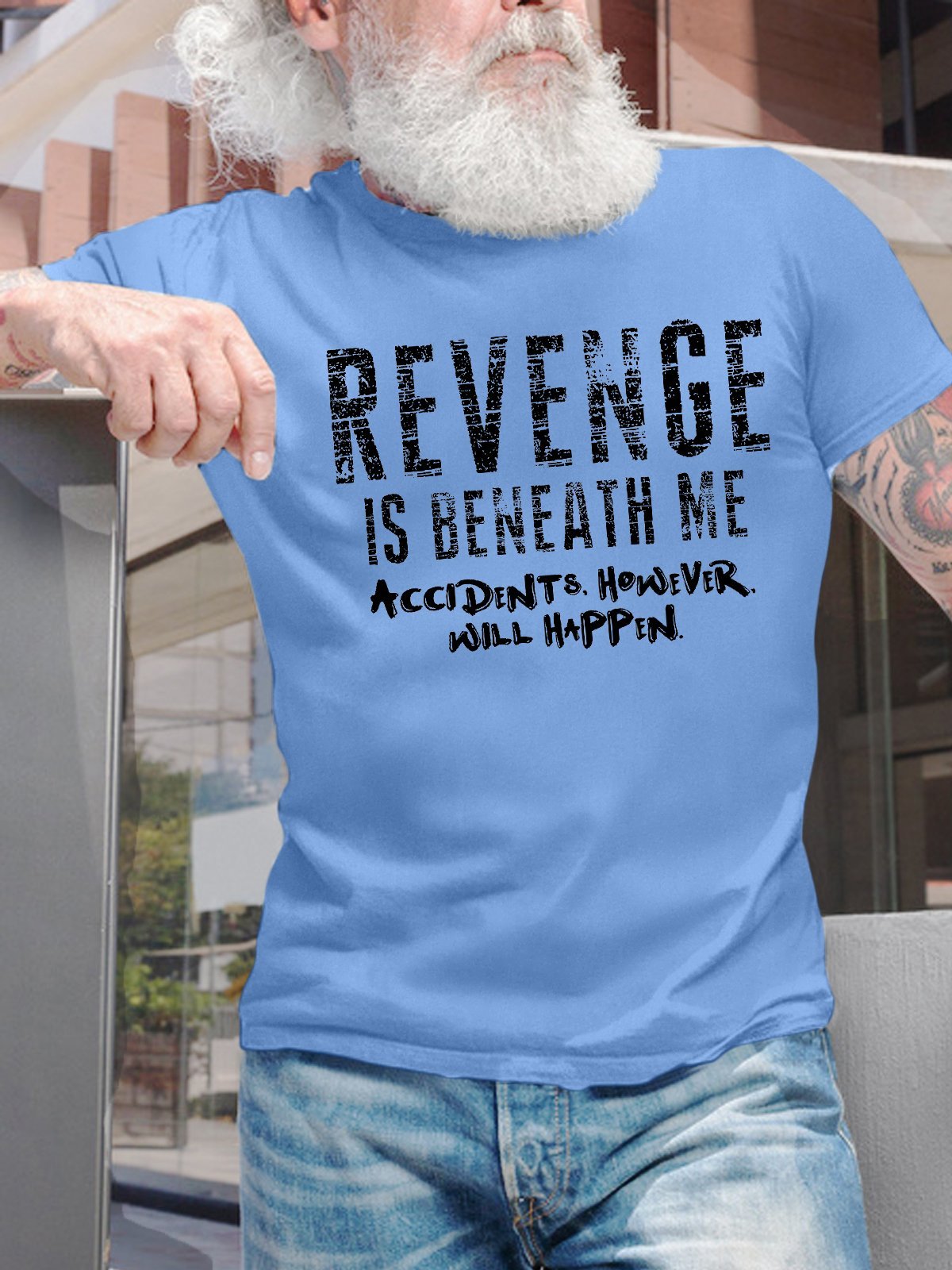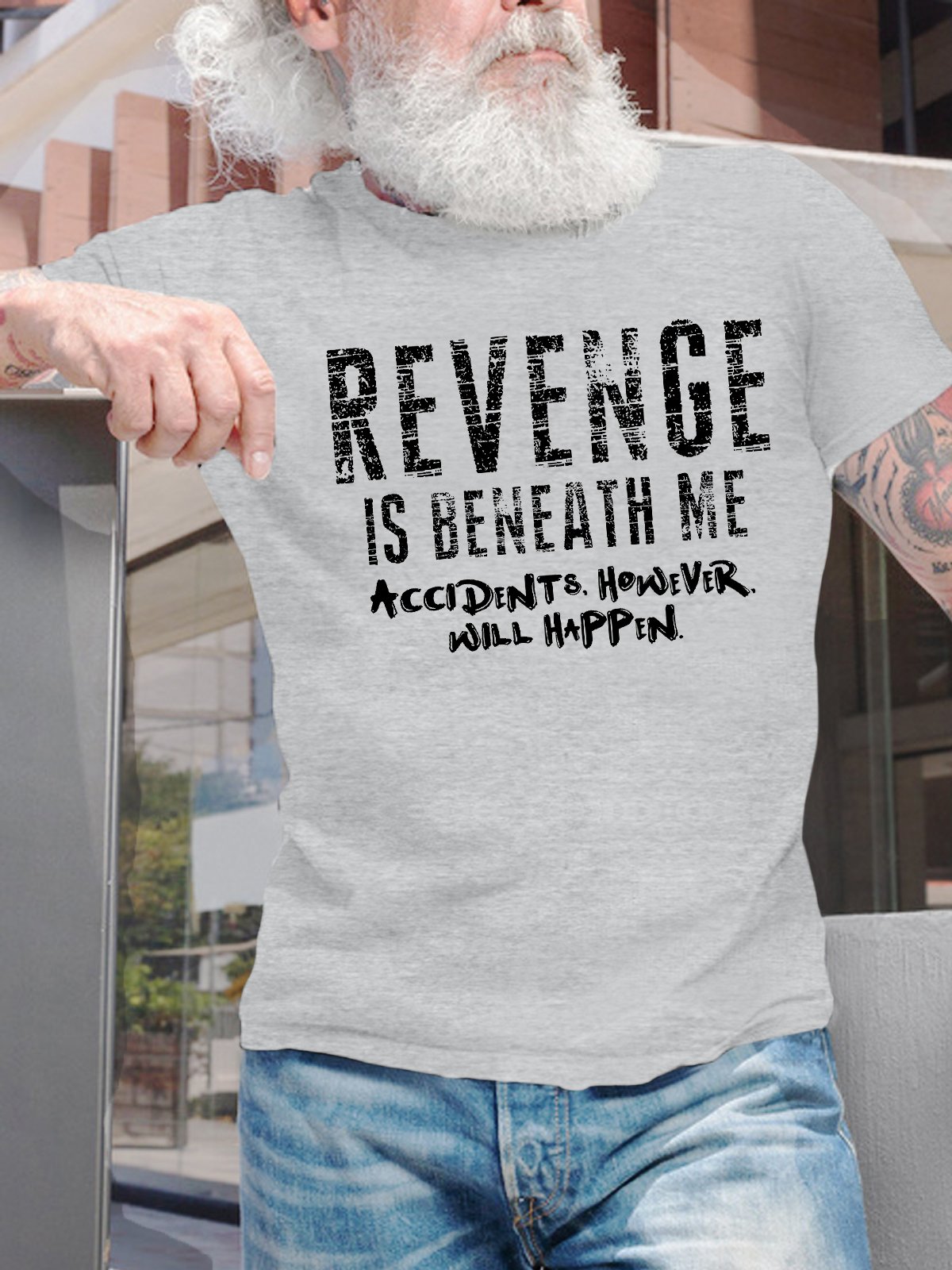 Men's Revenge Is Beneath Me Accidents However Will Happen Funny Graphic Printing Text Letters Casual Loose Cotton T-Shirt