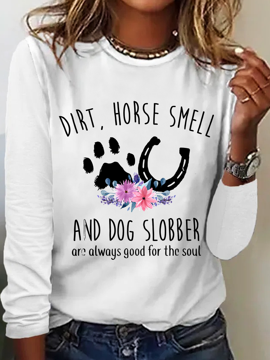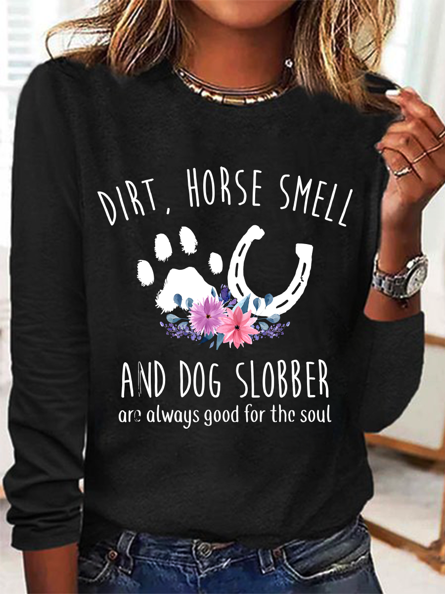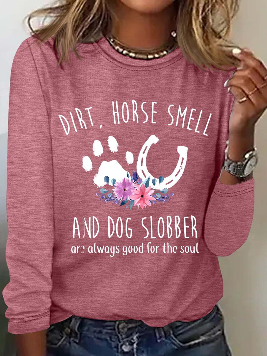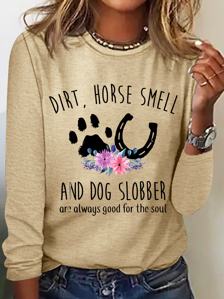 Horse Smell And Dog Slobber Dog Lover Horse Lover Casual Long Sleeve Shirt