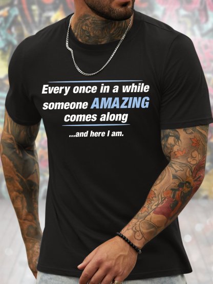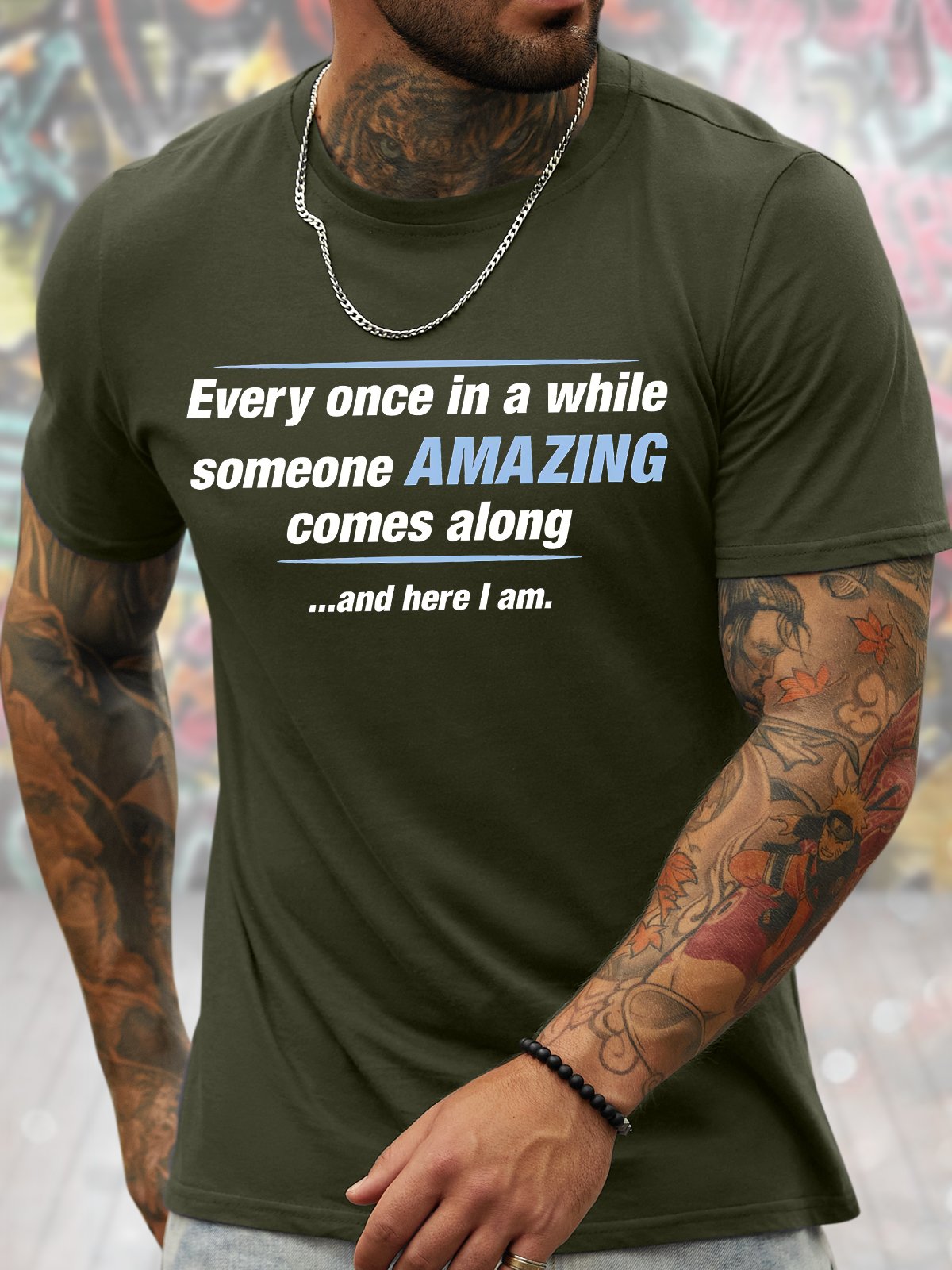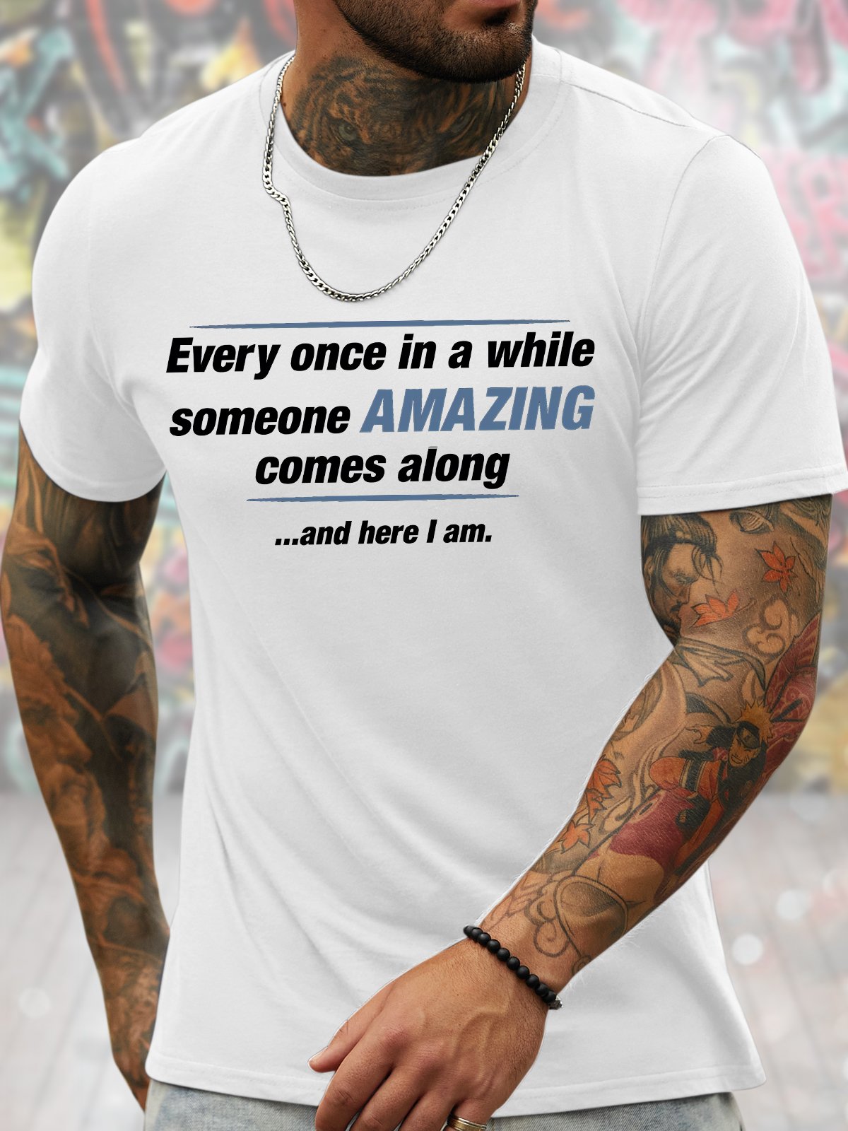 Men's Every Once In A While Someone Amazing Comes Along And Here I Am Funny Graphic Printing Father's Day Gift Casual Cotton T-Shirt