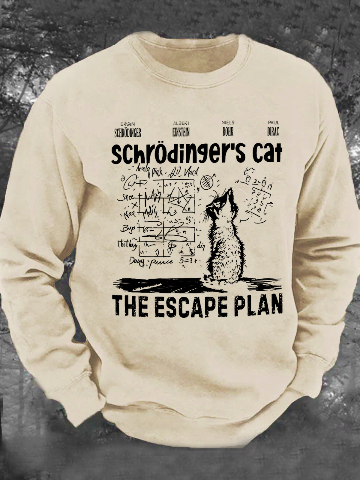 Men's Schrodinger's Cat Escape Plan Funny Loose Painting Casual Sweatshirt