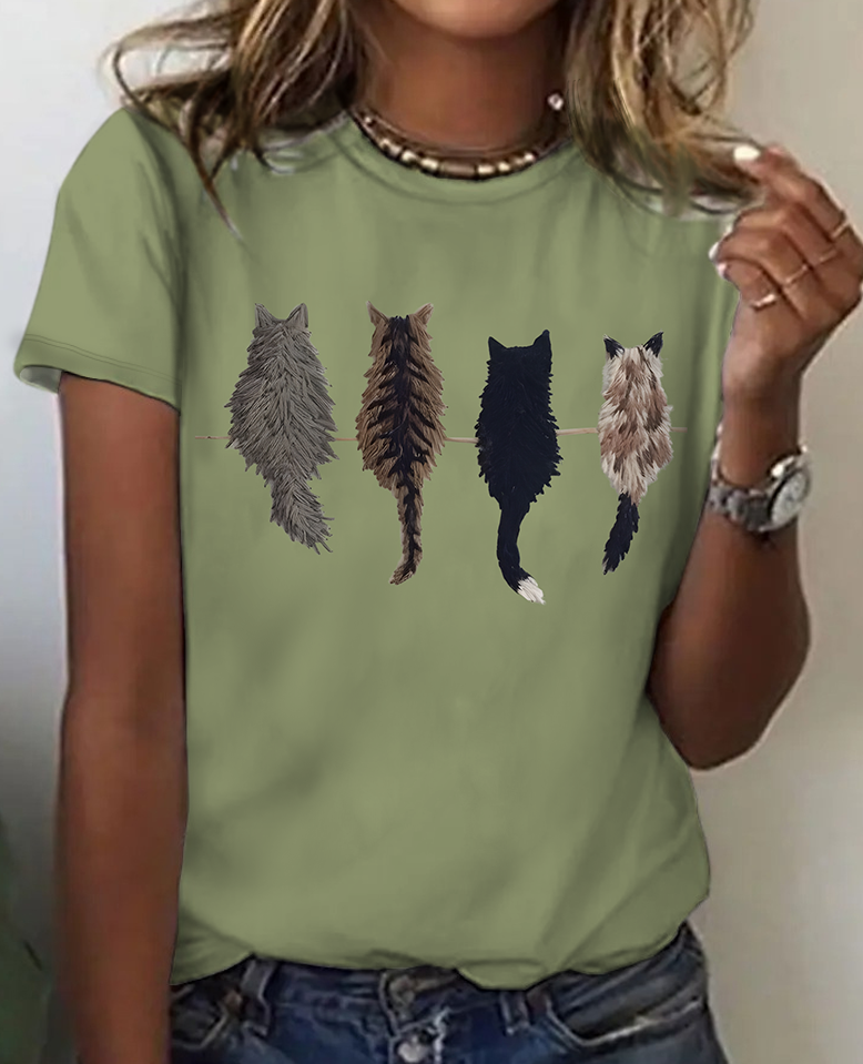 Women's Cute Cat Back Print Cotton T-Shirt