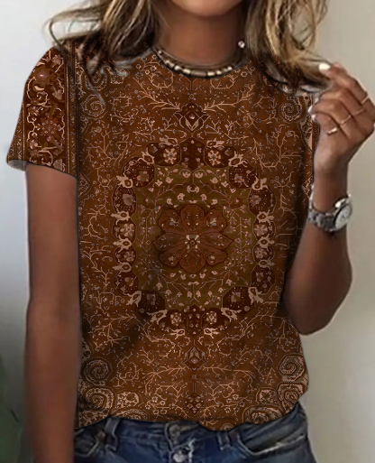 Women's Vintage Bohemian Floral Print Cotton T-Shirt