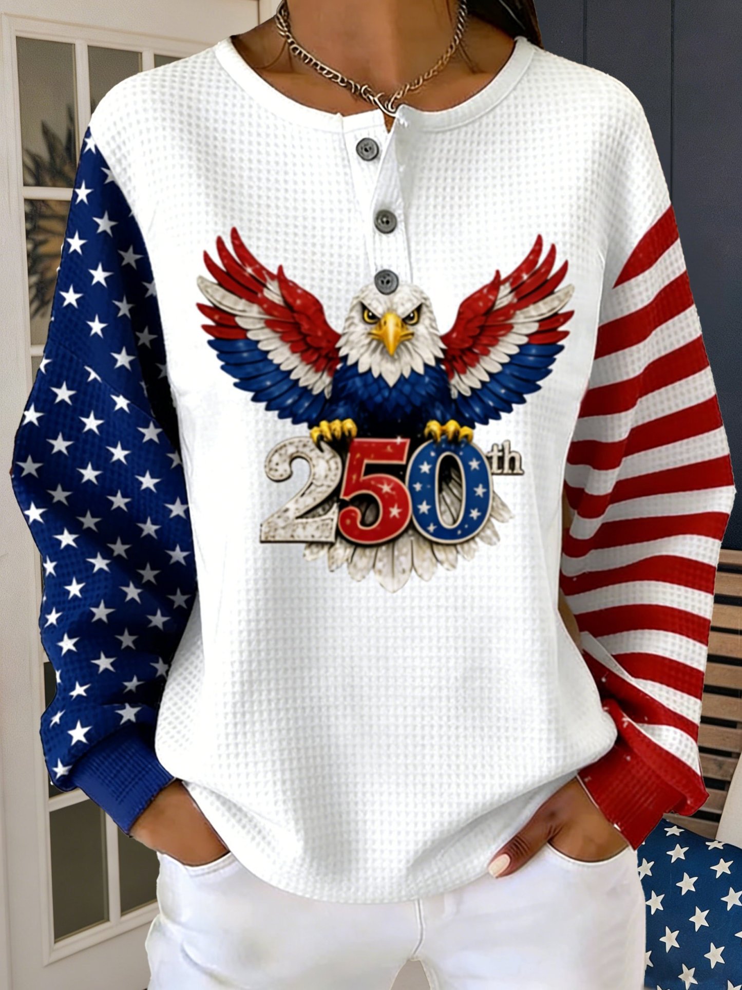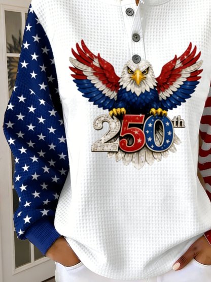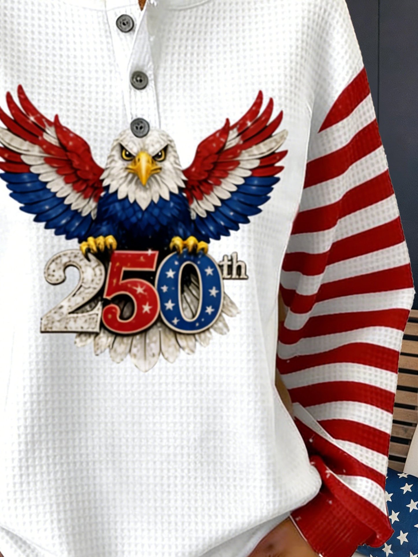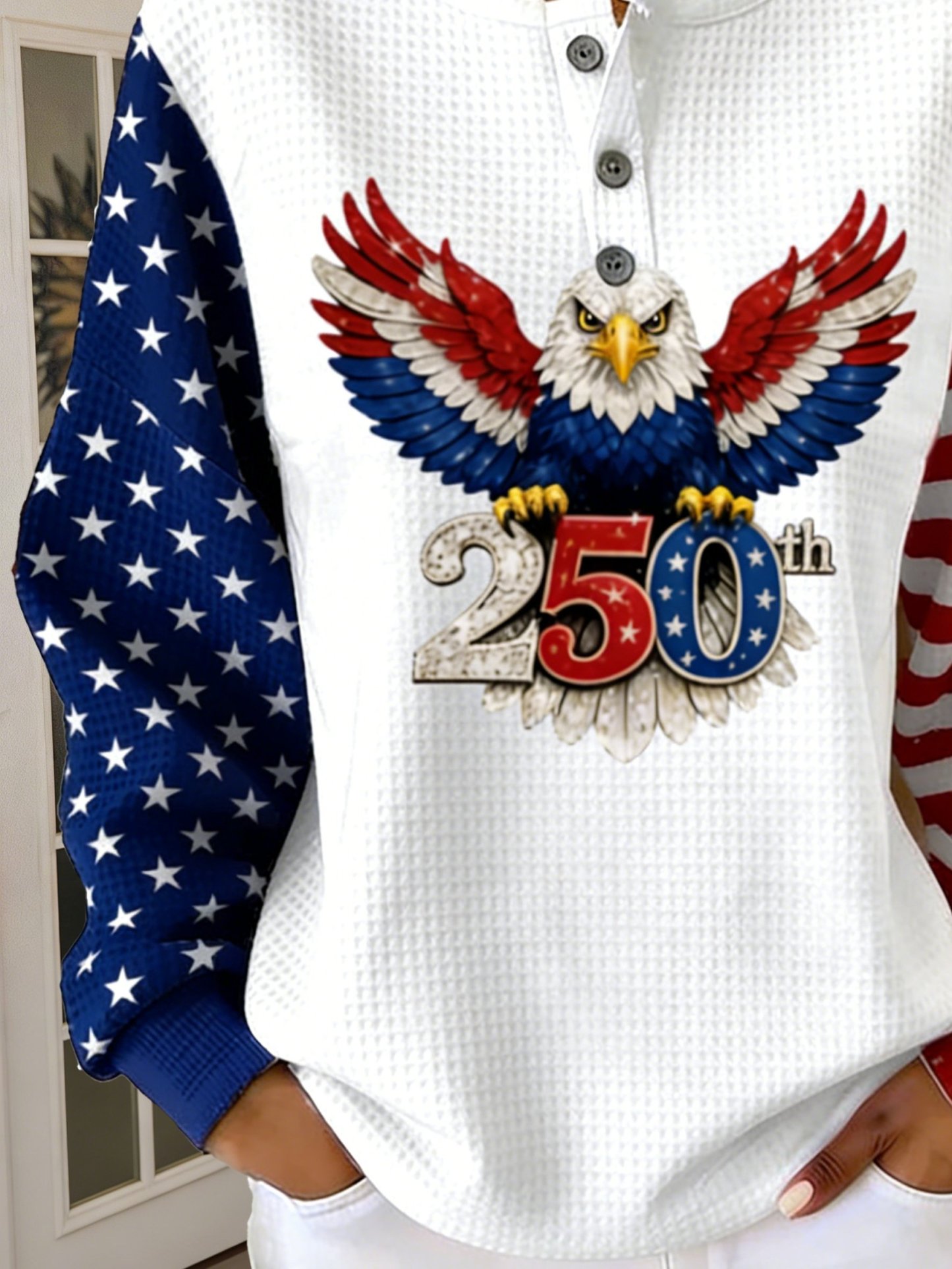 3D Printing Waffle America Flag Round Neck Button Casual Hoodie