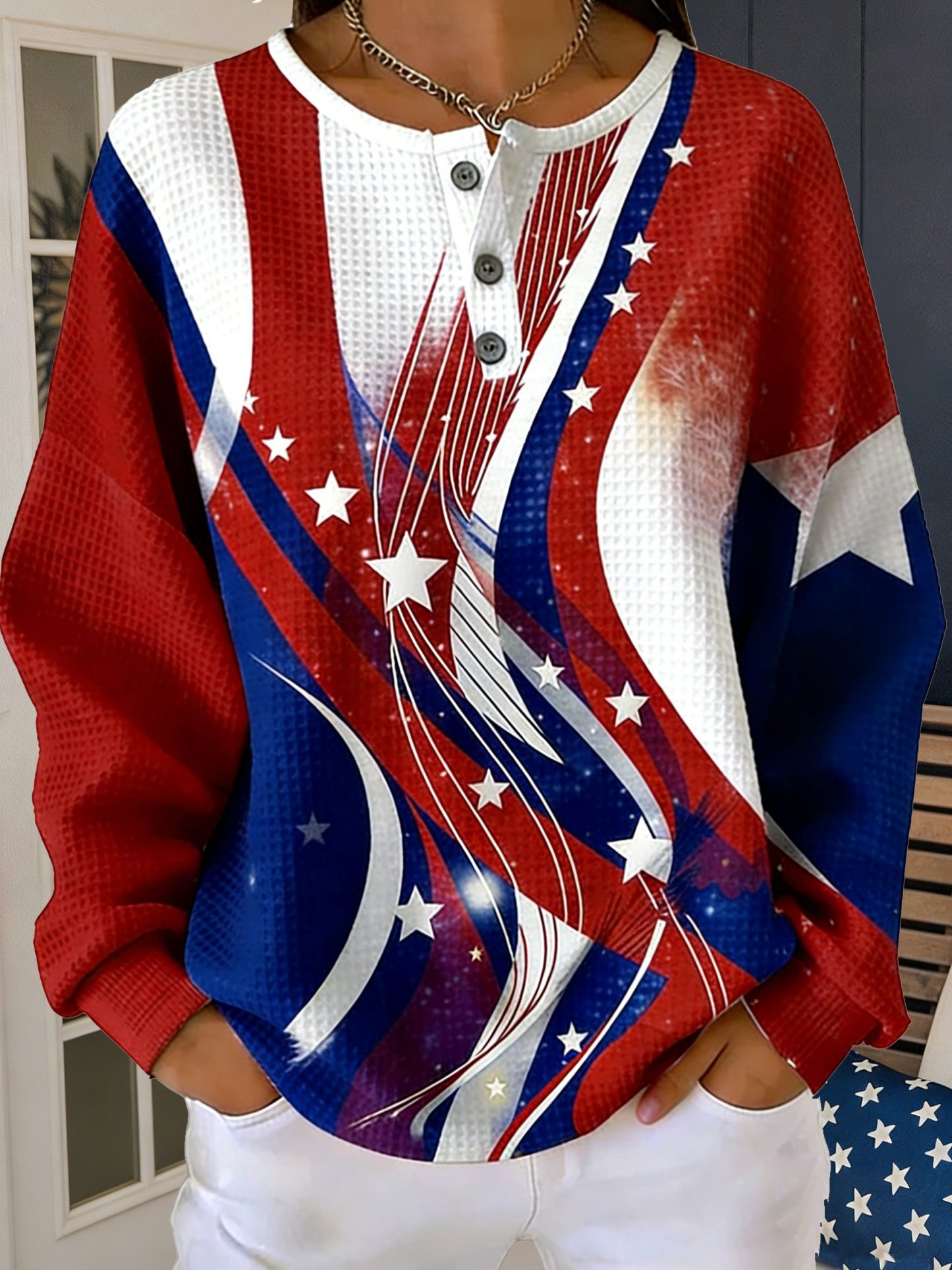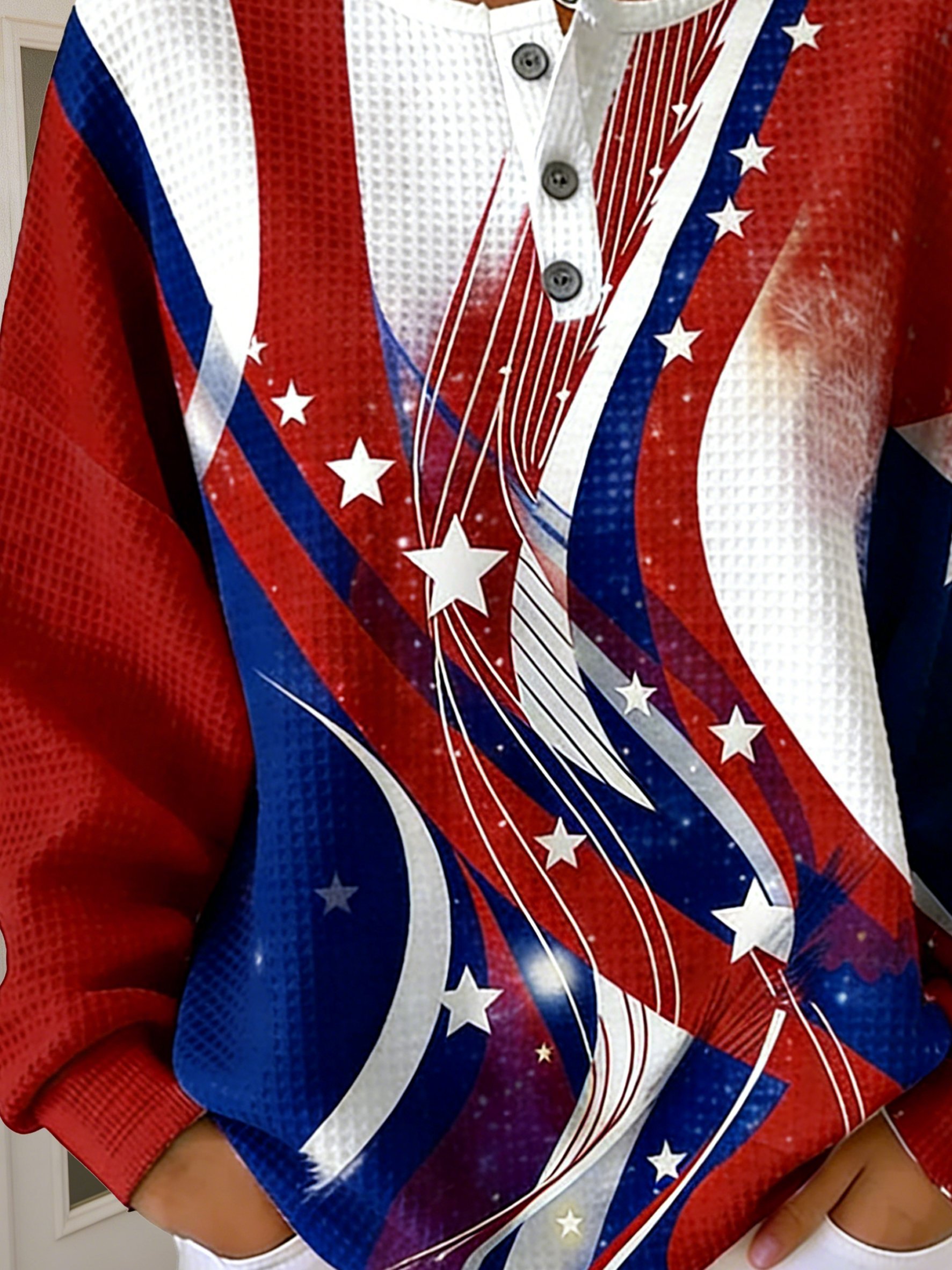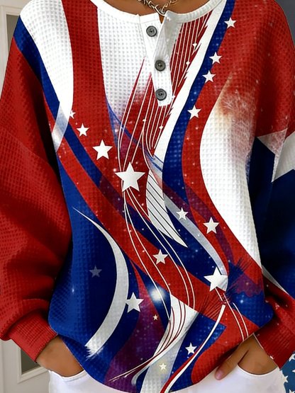 3D Printing Waffle America Flag Round Neck Casual Hoodie