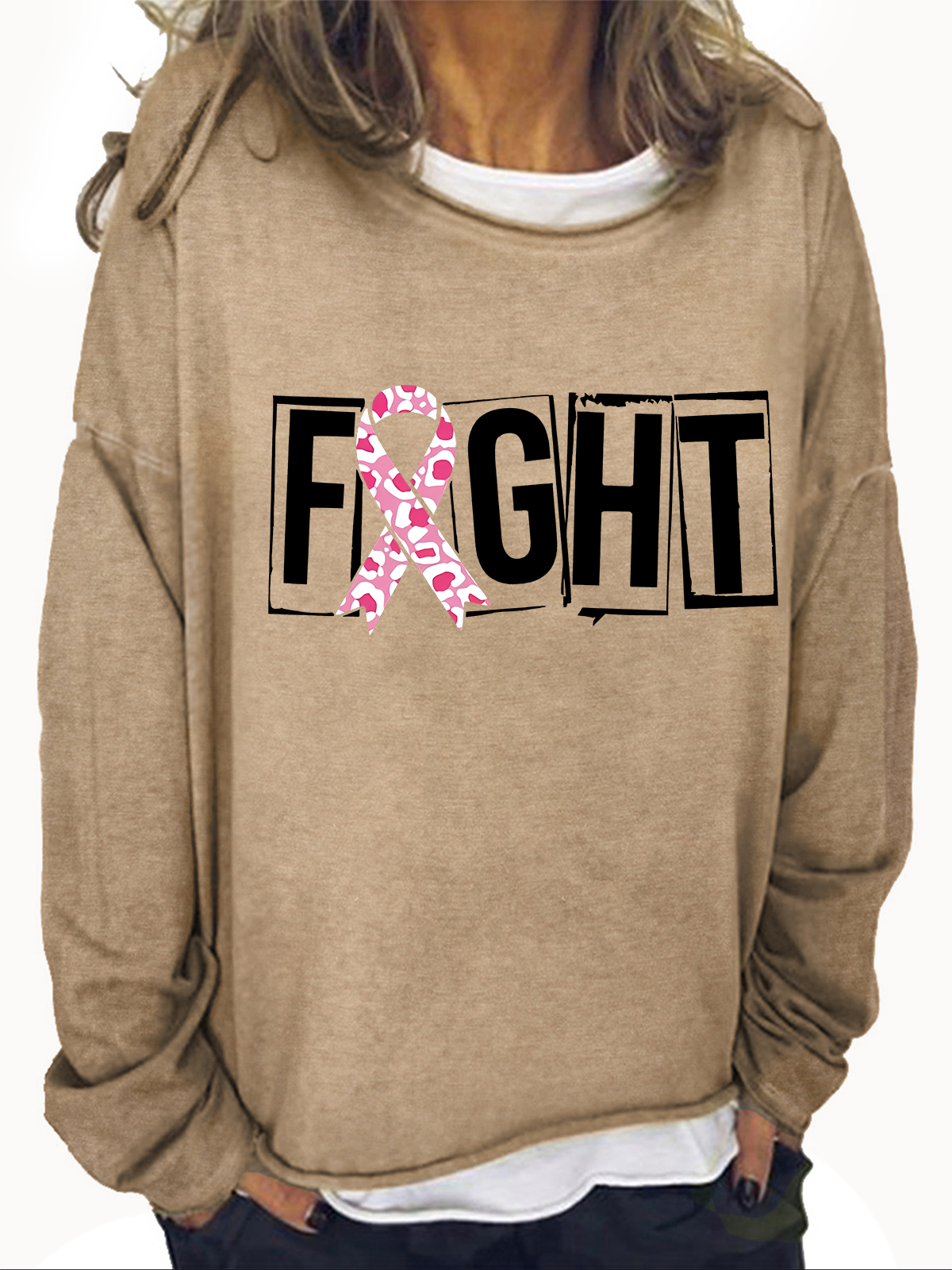 Breast Cancer Fight Cancer Crew Neck Casual Sweatshirt