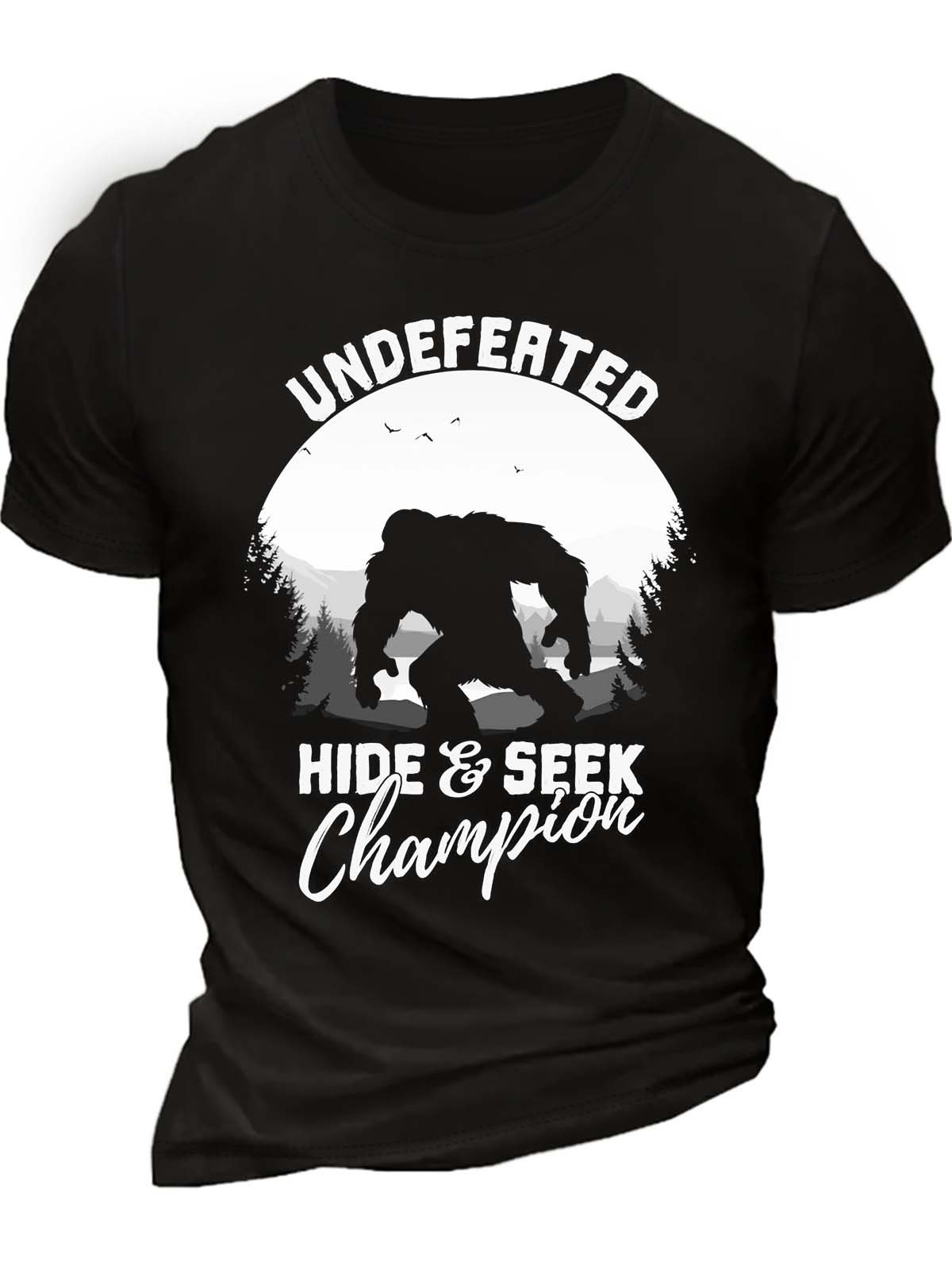 Men’s Undefeated Hide & Seek Champion Casual Cotton Crew Neck Text Letters T-Shirt