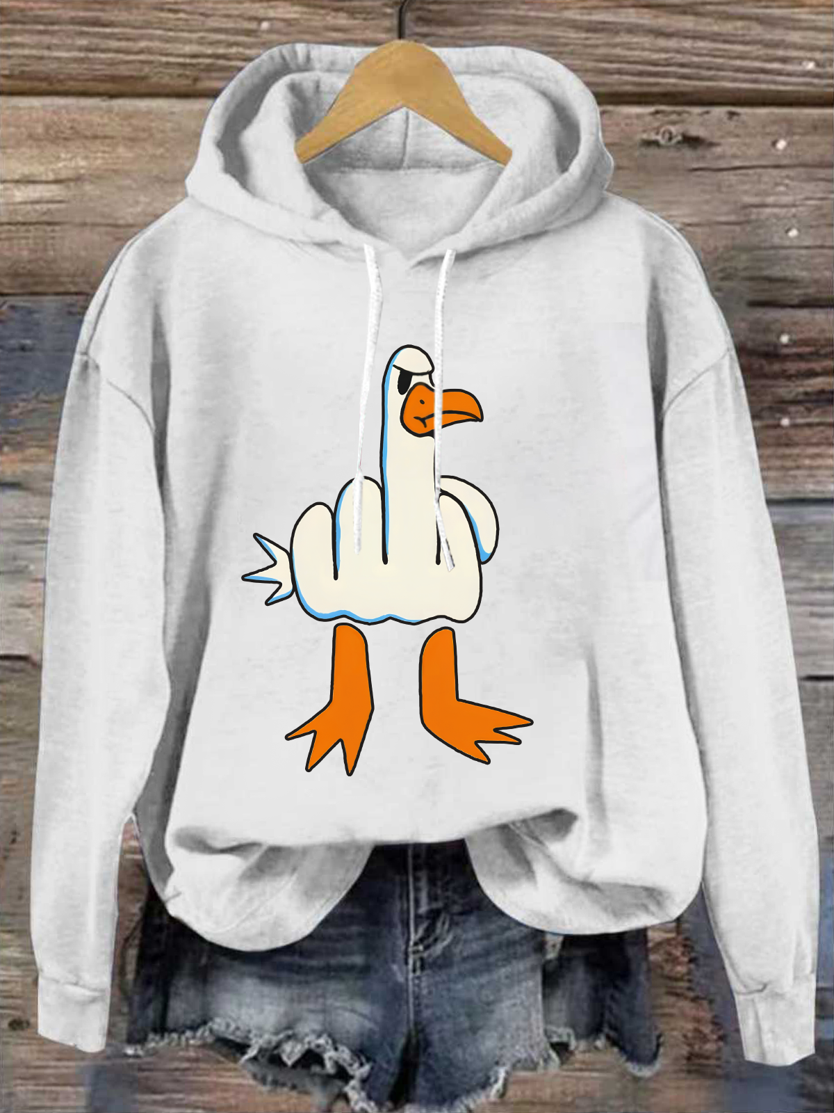 Funny Big White Goose Funny Cotton-Blend Animal Casual Hoodie