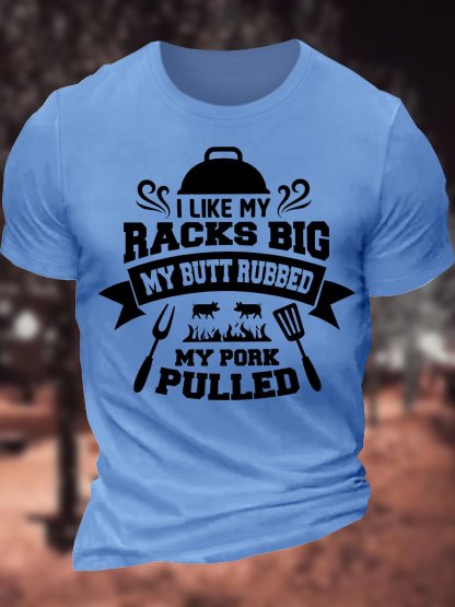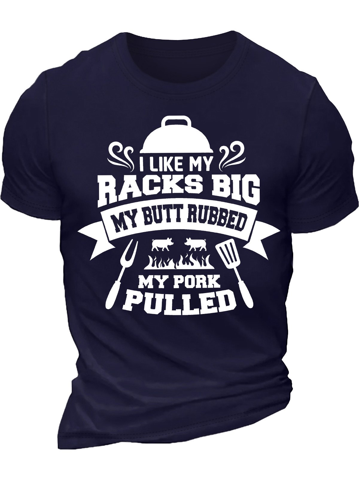 Men's I Like My Racks Big My Butt Rubbed My Pork Pulled Funny Graphic Printing Loose Cotton Casual Text Letters T-Shirt