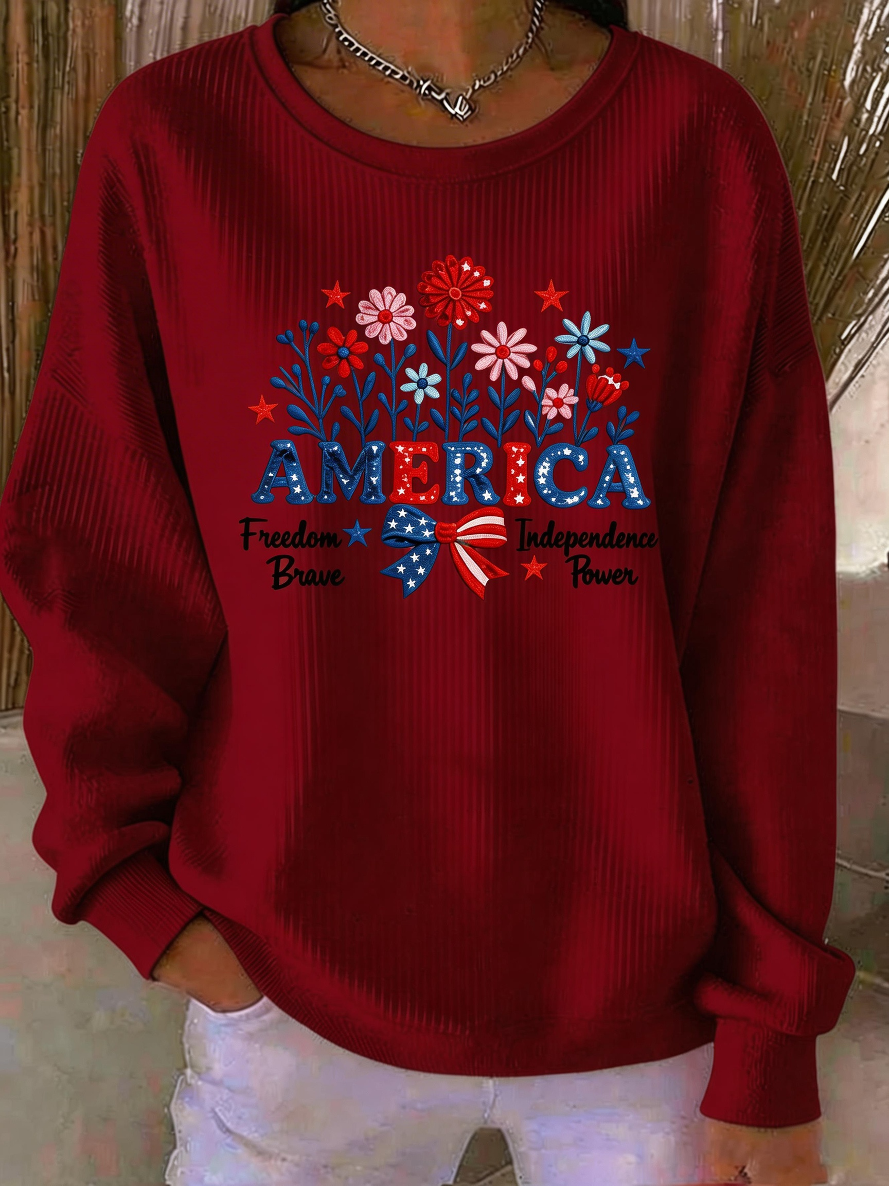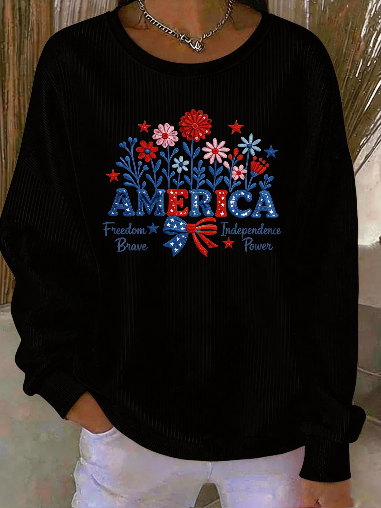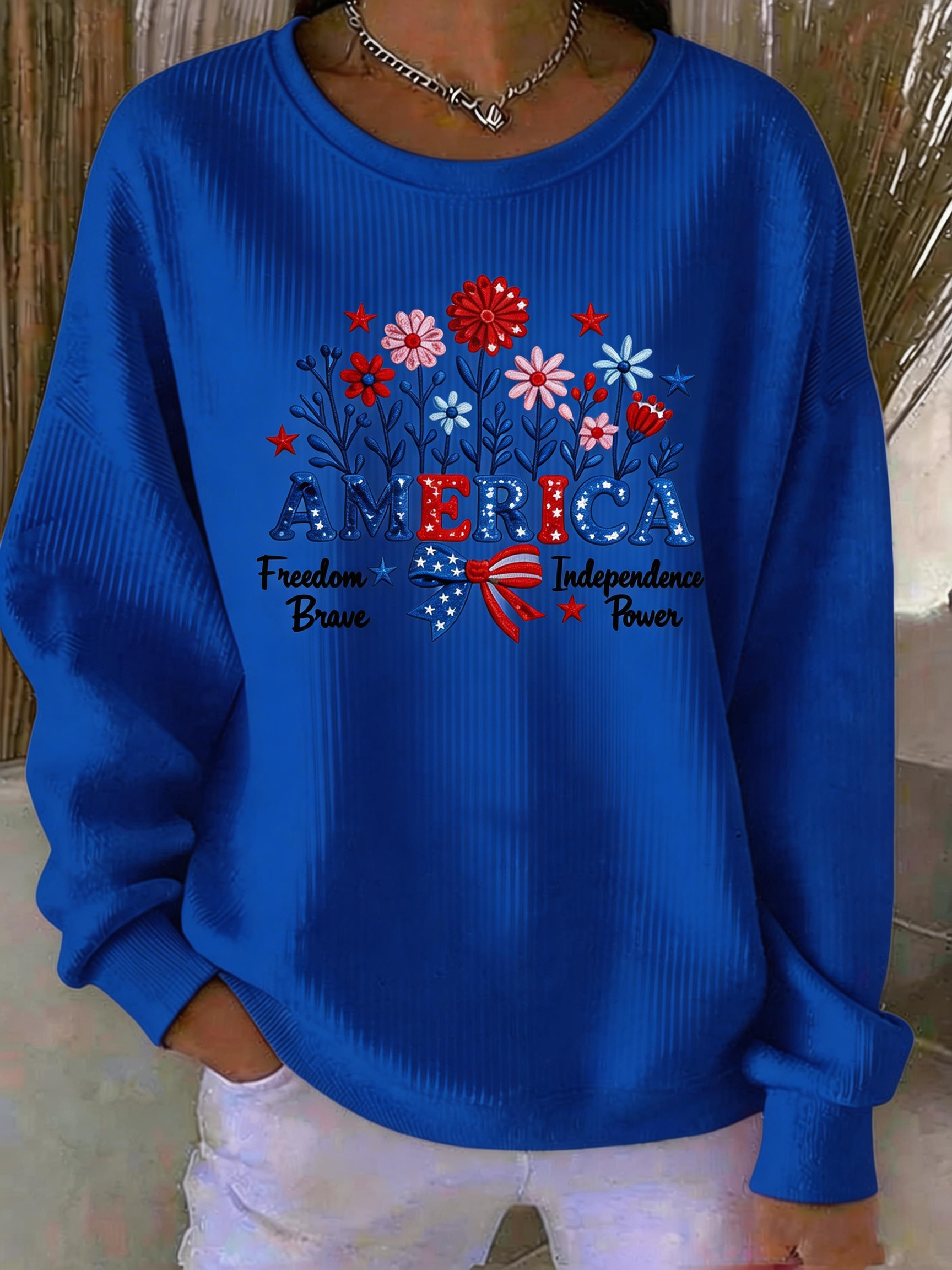 Patriotic Floral 'AMERICA' Ribbed Sweatshirt