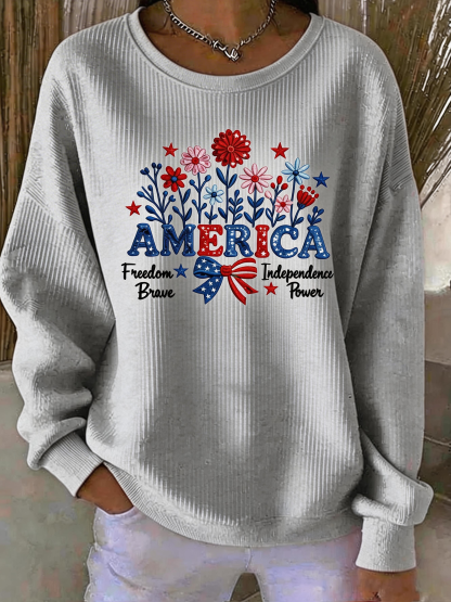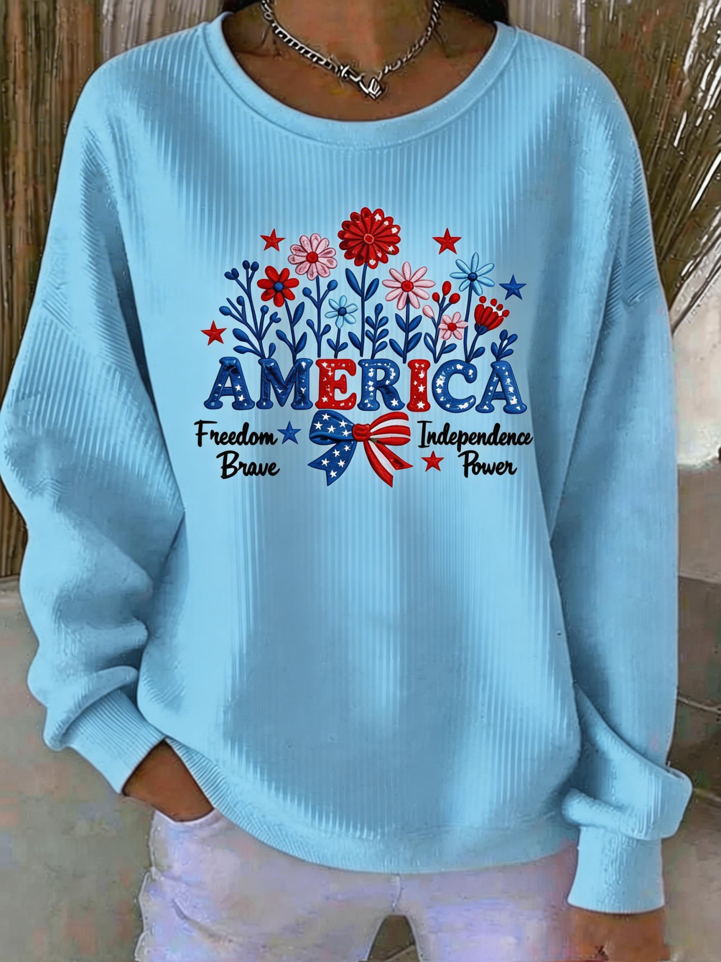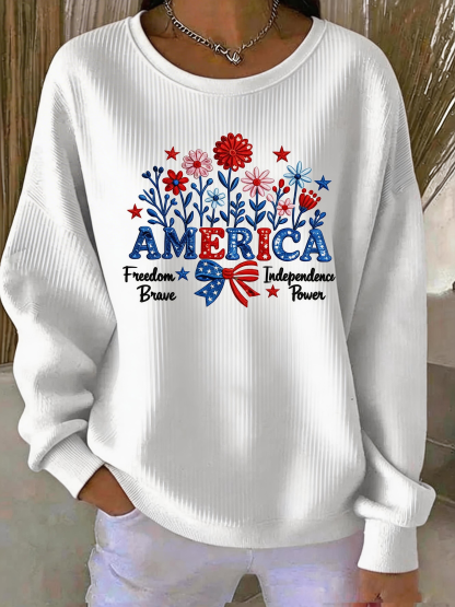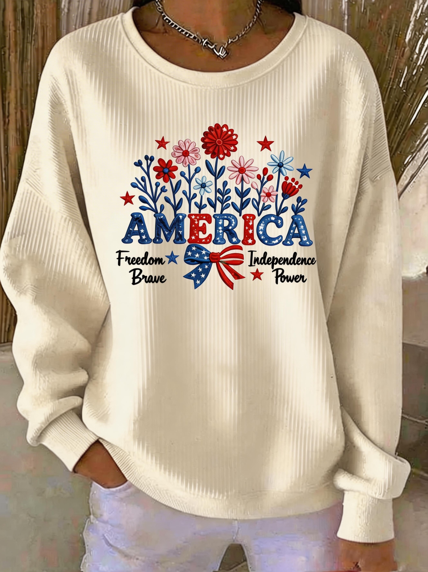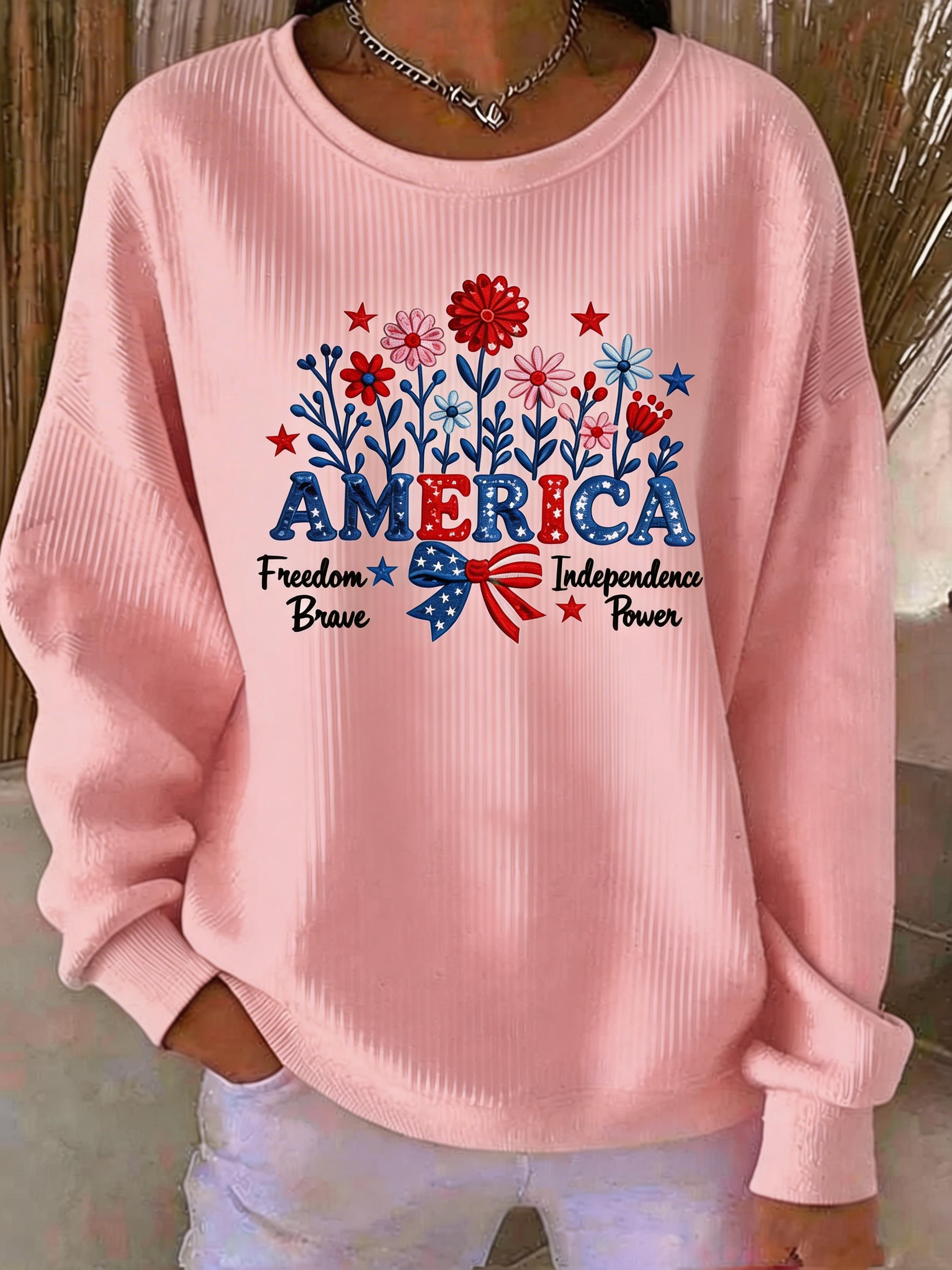 Patriotic Floral 'AMERICA' Ribbed Sweatshirt