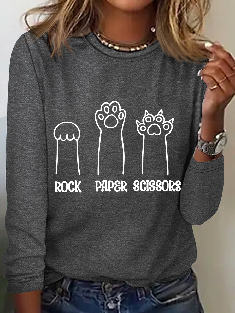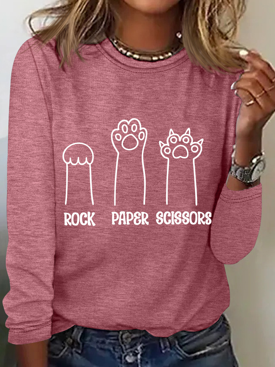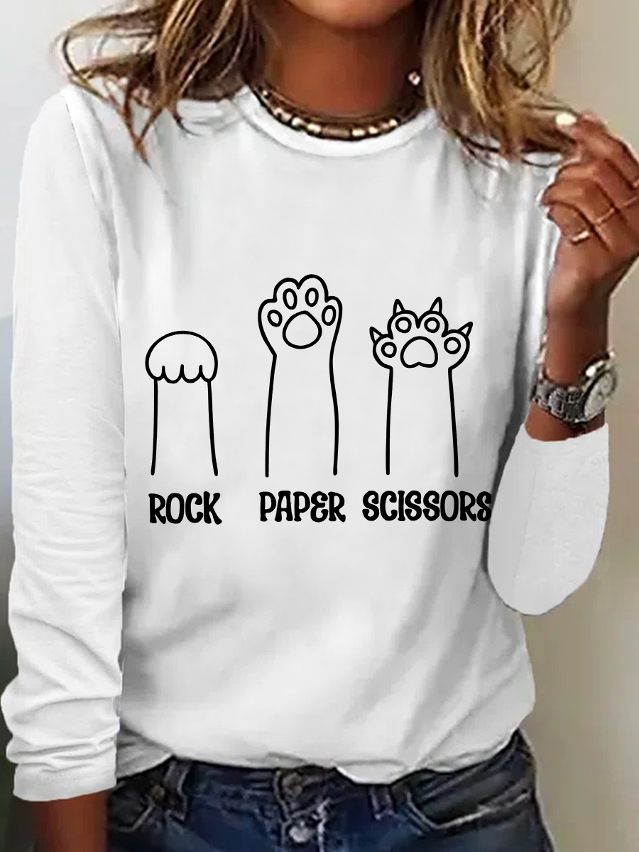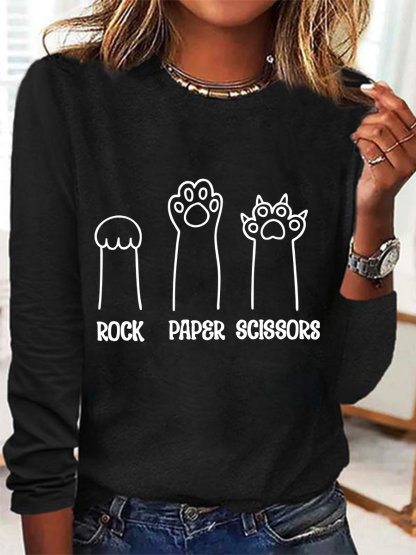 Rock Paper Scissors Hand Game Cute Paw Funny Cat Casual Text Letters Blouse
