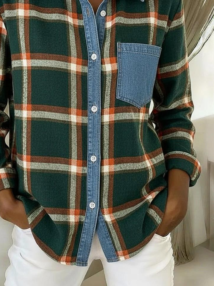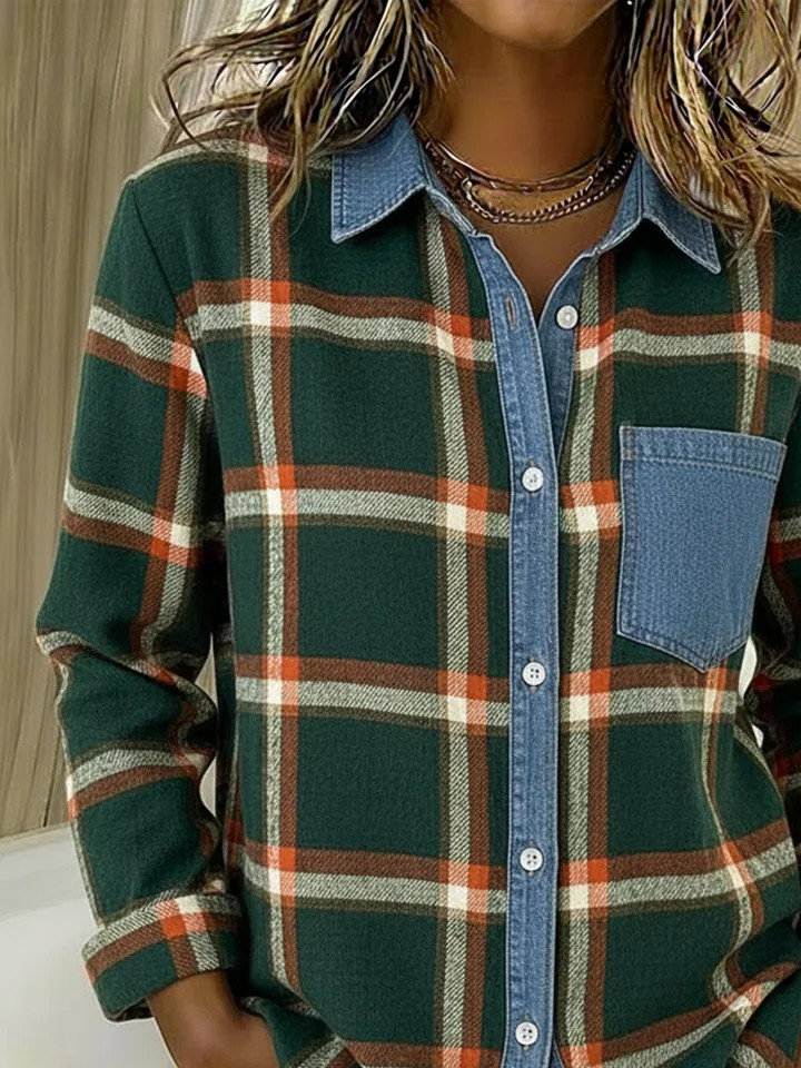 Vintage Loose Shawl Collar Plaid Shirt