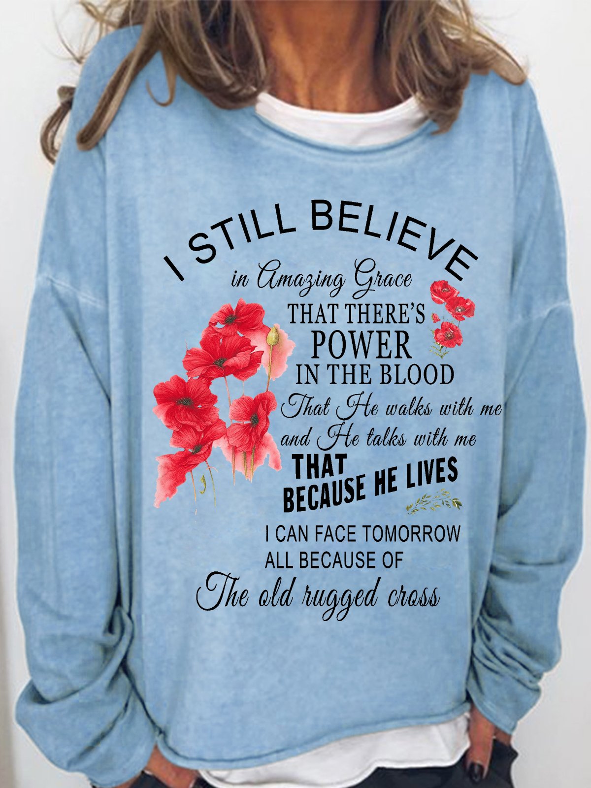 Women's I Still Believe In Amazing Grace That There’s Power In The Blood That Because He Lives Text Letters Sweatshirt