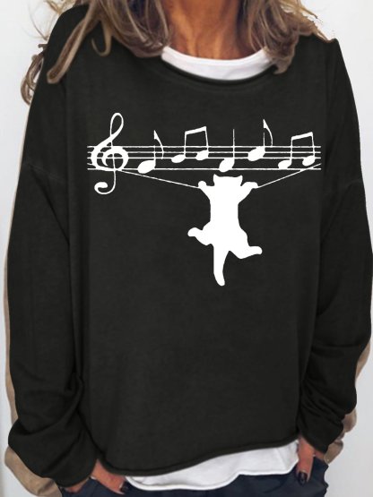 Women's Funny Cat Letters Casual Crew Neck Sweatshirt