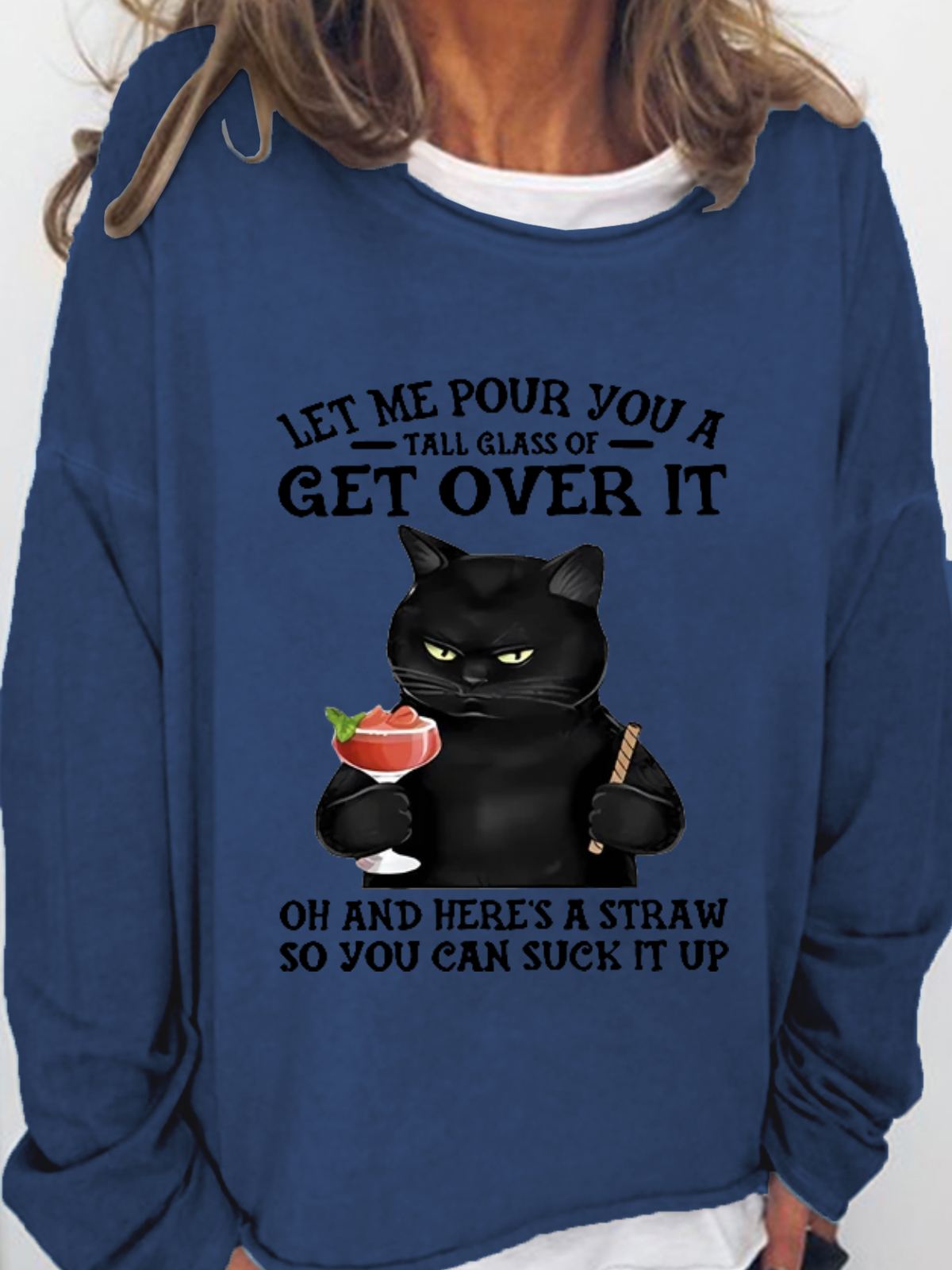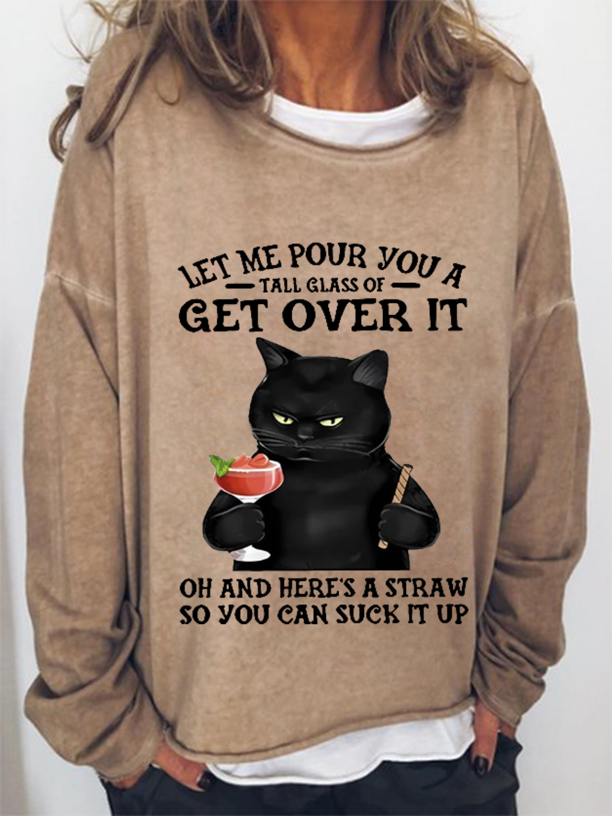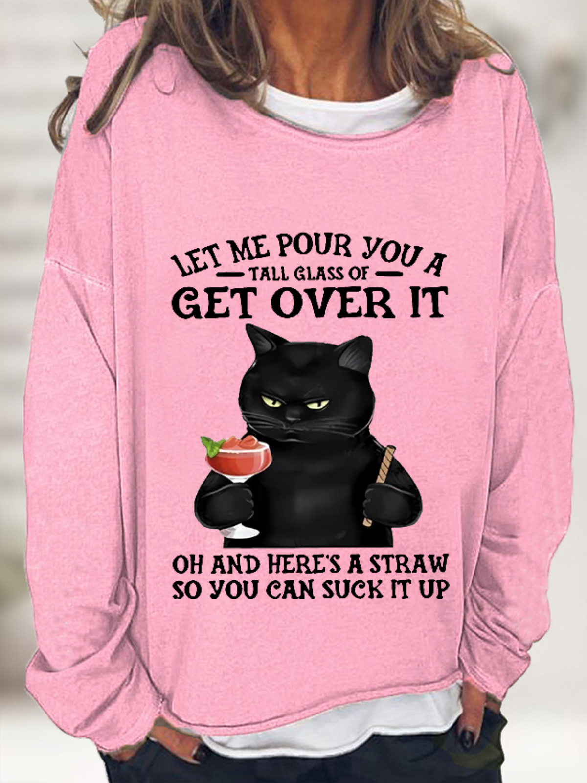Women's Black Cat and drink Funny Sweatshirt