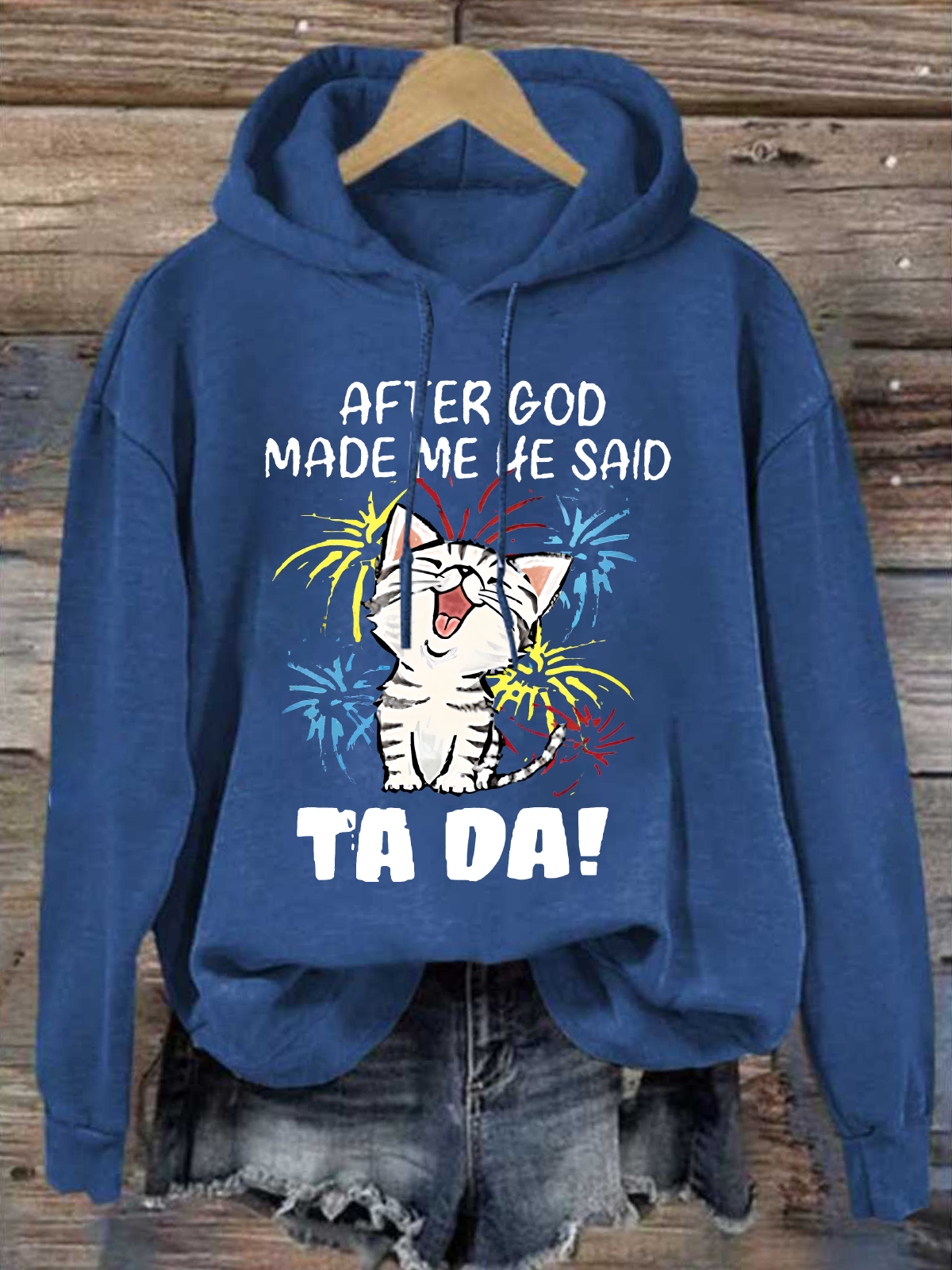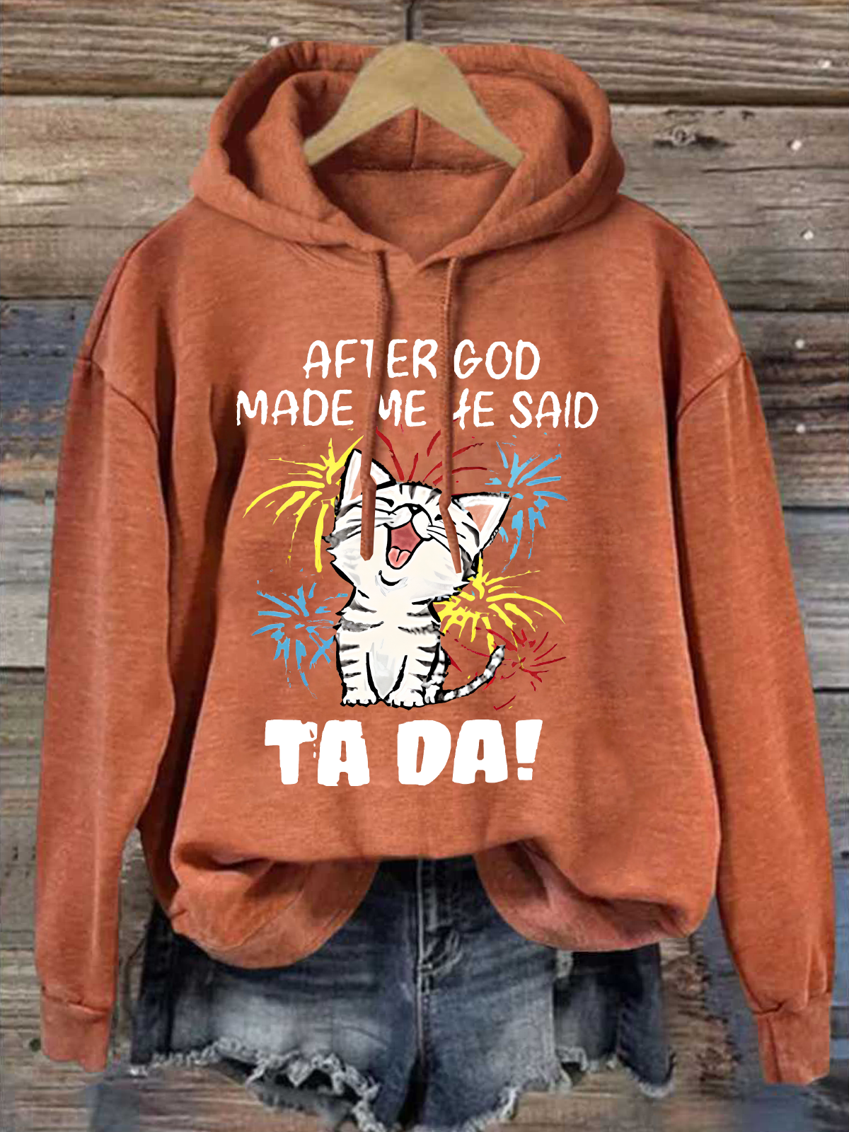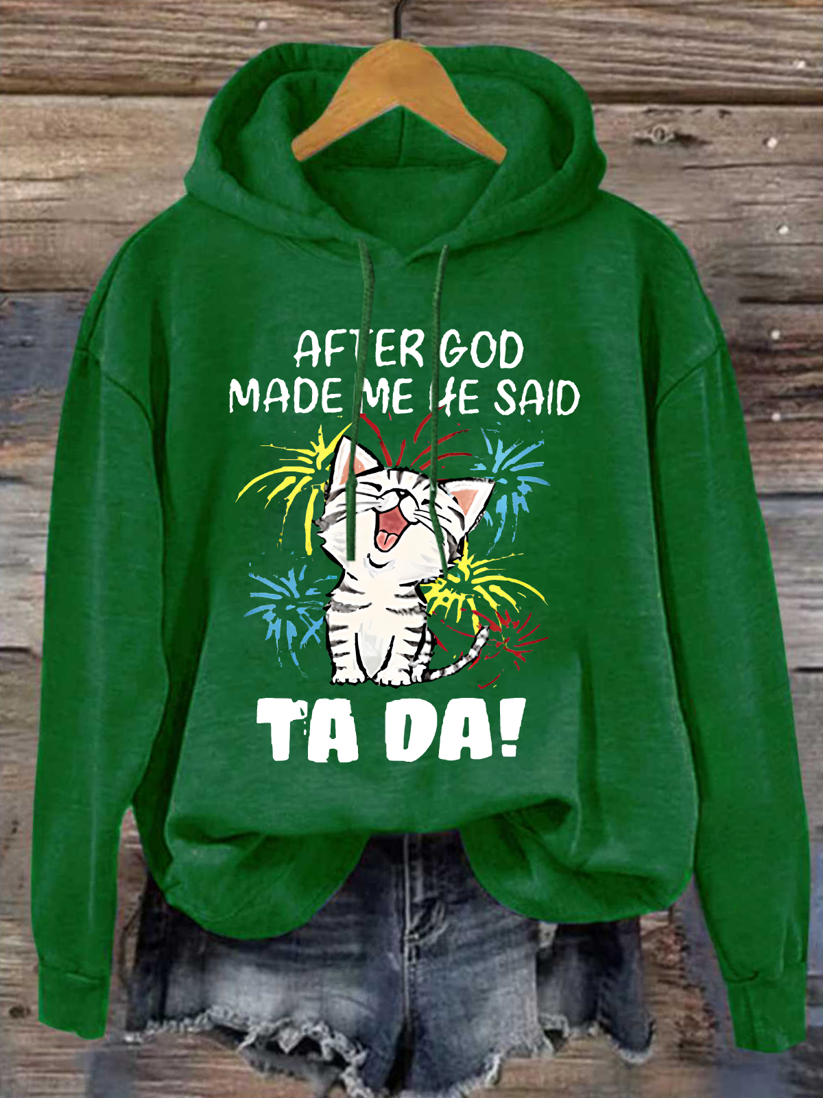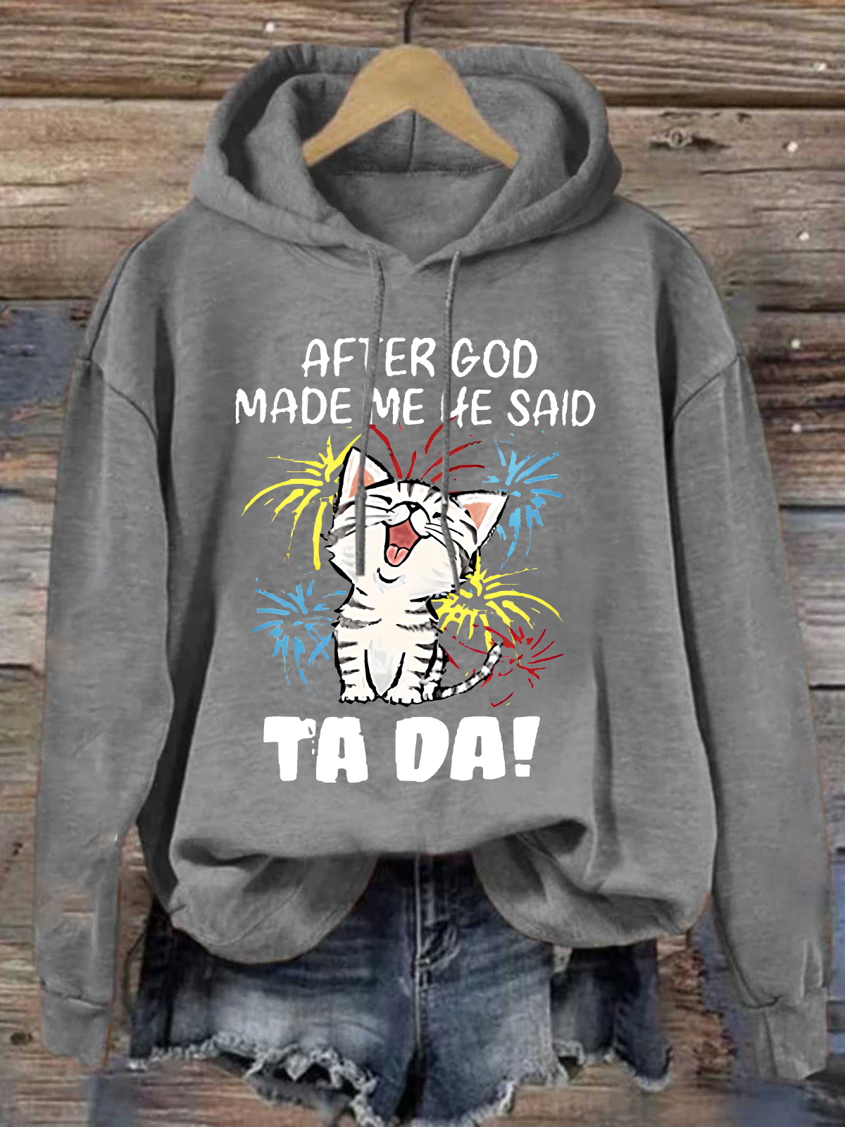 Women's Funny Cat After God Made Me He Said Ta Da Casual Loose Animal Hoodie