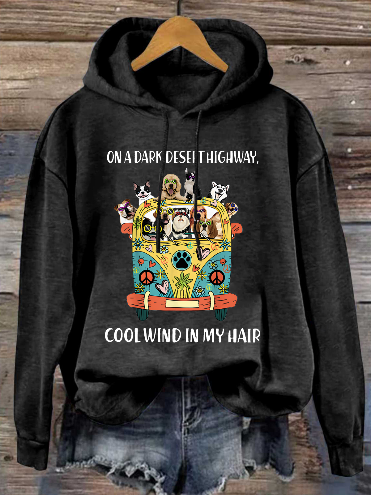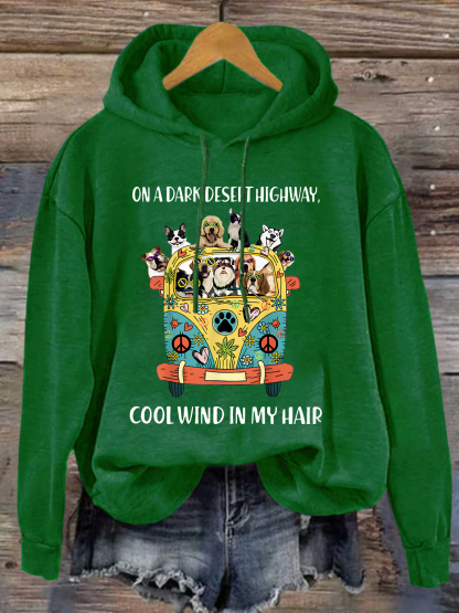 Women's Funny On A Dark Desert Highway Cool Wind In My Hair Graphic Printing Cotton-Blend Animal Loose Casual Hoodie