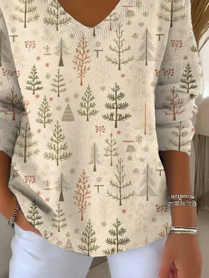 Women's Long Sleeve T-shirt Spring/Fall Apricot Christmas Printing V Neck Daily Going Out Casual Top