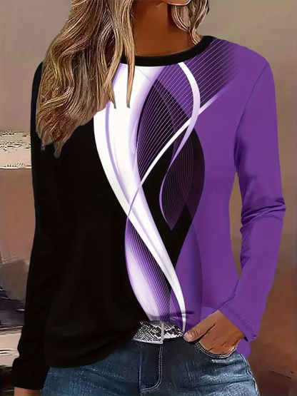 Women's Long Sleeve T-shirt Spring/Fall Purple Abstract Printing Jersey Crew Neck Daily Going Out Casual Top