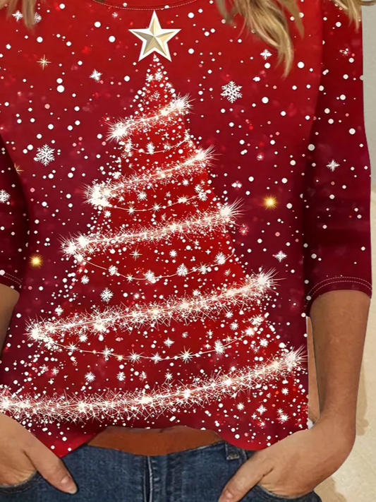 Women's Long Sleeve T-shirt Spring/Fall Red Christmas Printing Jersey Crew Neck Daily Going Out Casual Top