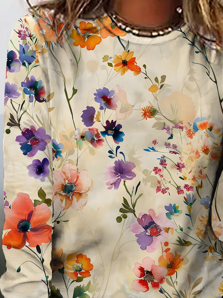 Women's Vintage Art Floral Print Crew Neck T-Shirt