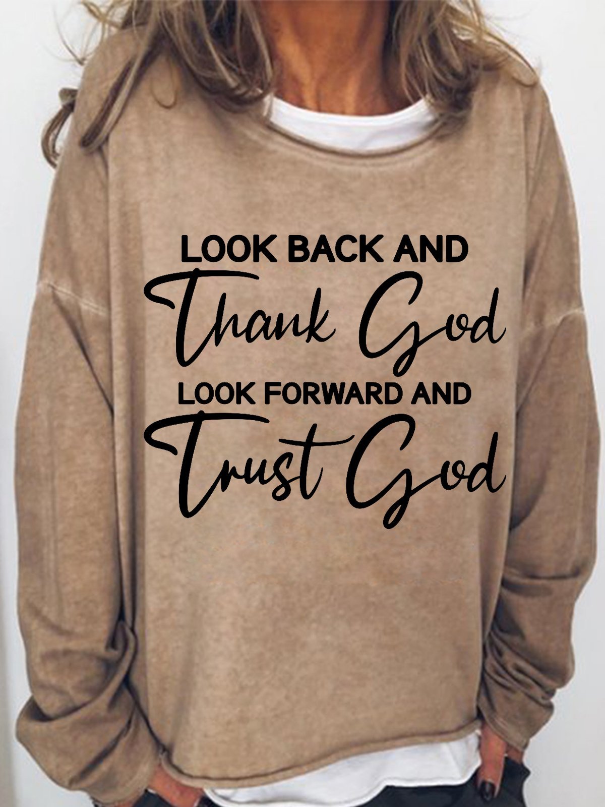 Women's Faith Look Back And Thank God Christian Quotes Sweatshirt