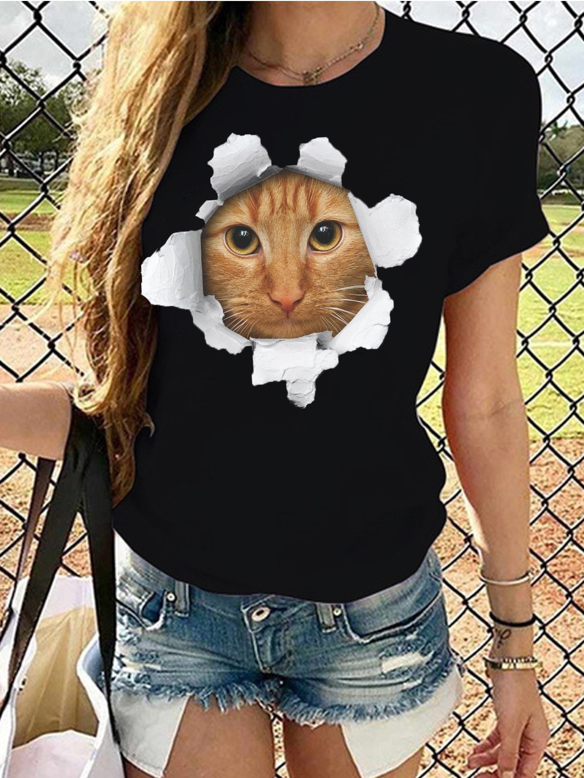 Womens Cute Print Casual Short Sleeve T-Shirt