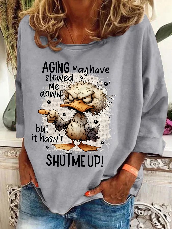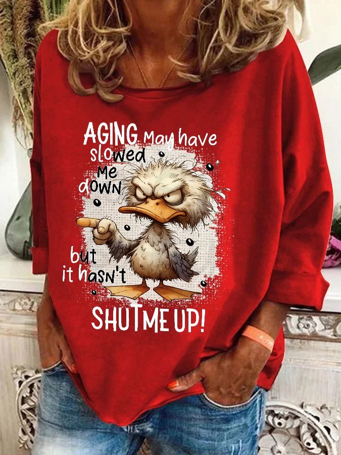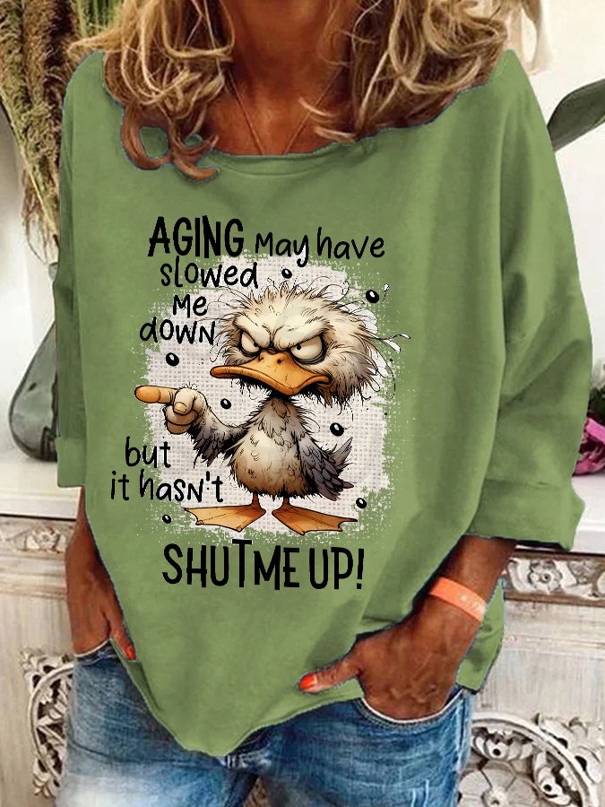 Aging May Have Slowed Me Down Silly Duck Angry Bird Sarcastic Quote Casual Sweatshirt