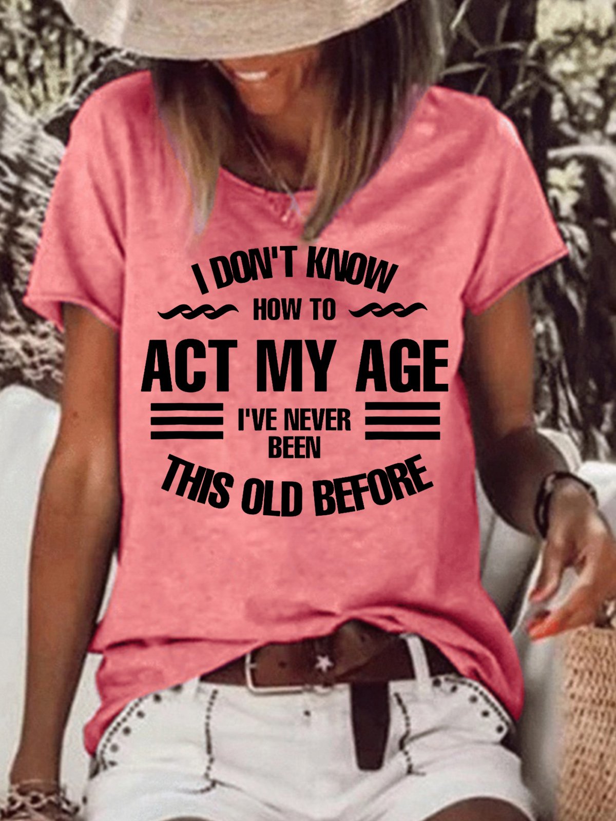 Funny I Don't Know How To Act My Age V Neck Letter Crew Neck Short Sleeve Top