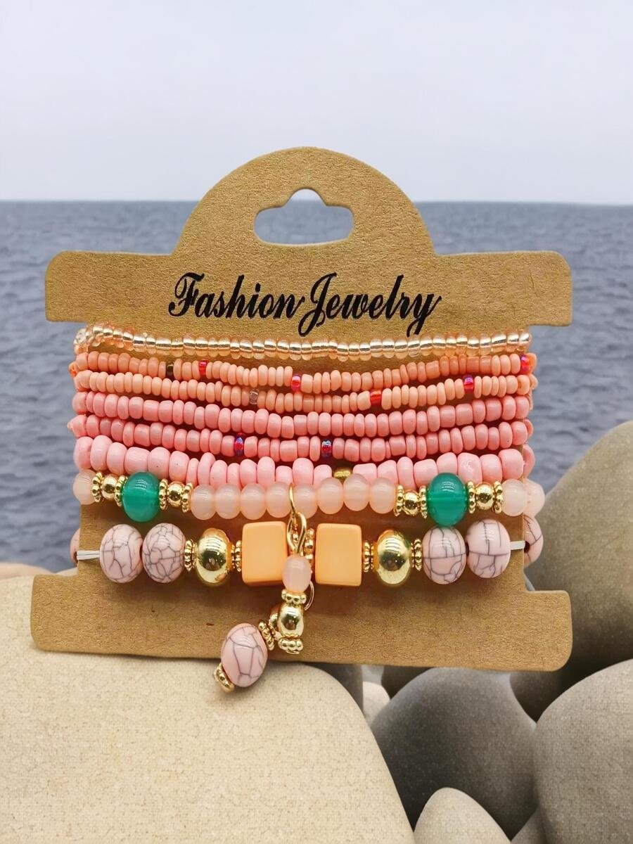 Handmade Bohemian Women's Millet Bead Bracelets, Romantic Element Bracelet Set 8 Pieces/set Bracelet