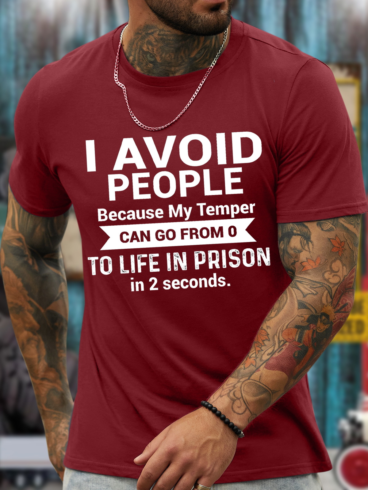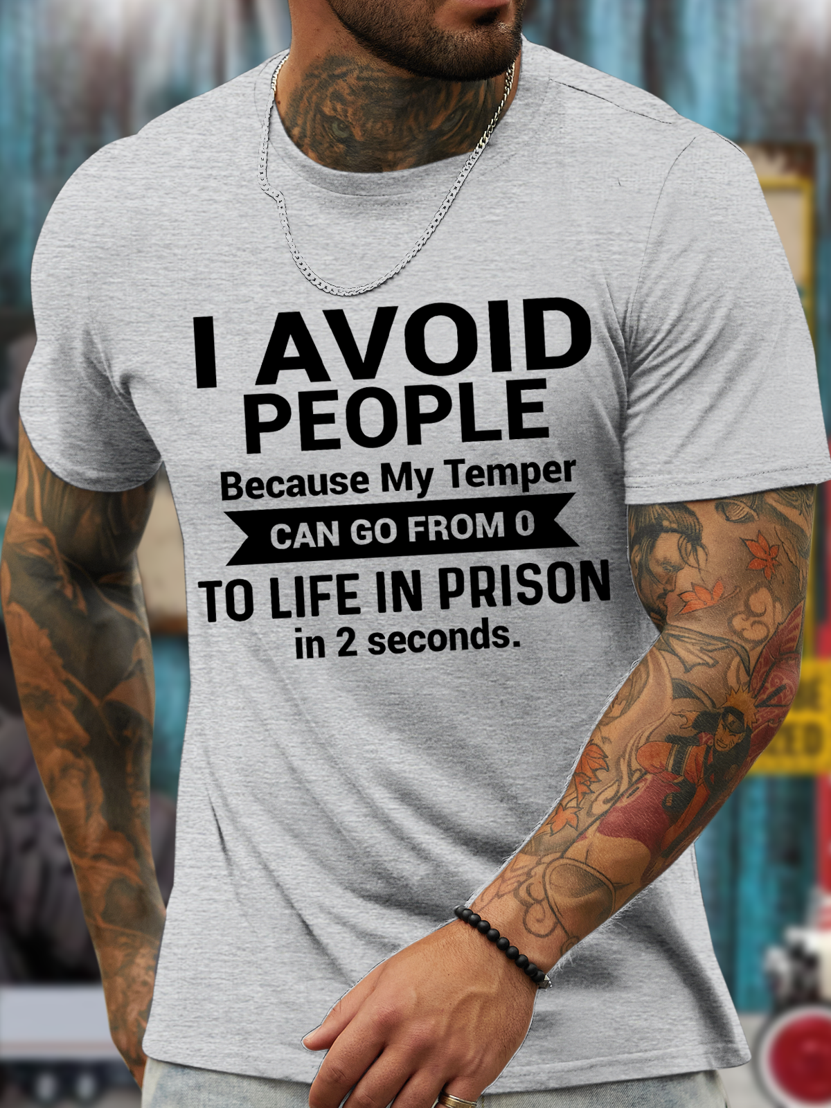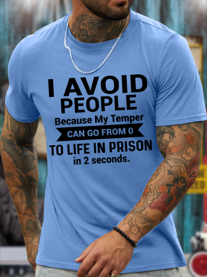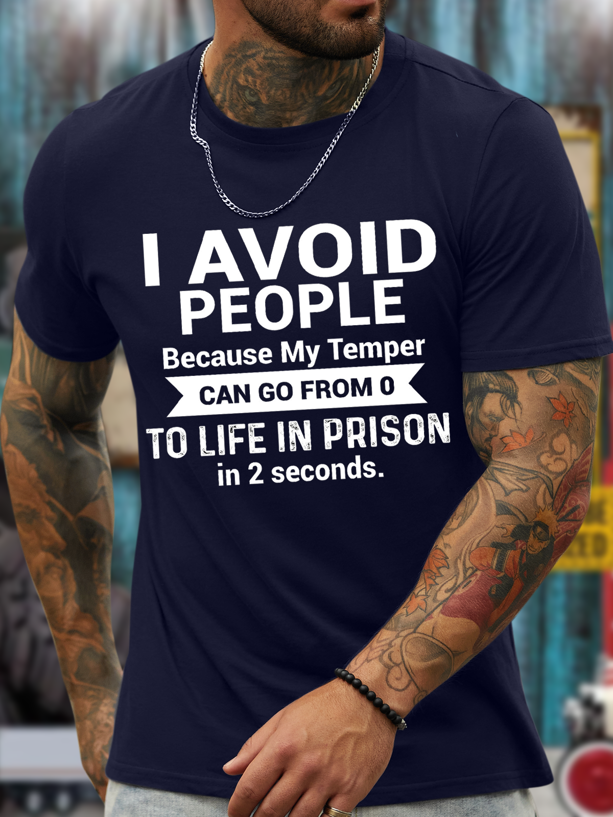 I avoid people because my temper can go from o to life in prison in 2 seconds Men's Cotton-Blend Crew Neck Loose Casual T-Shirt