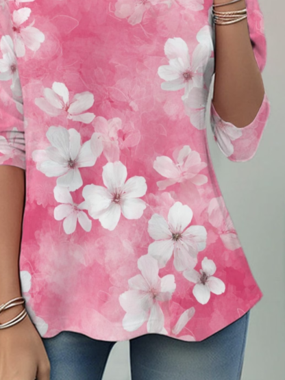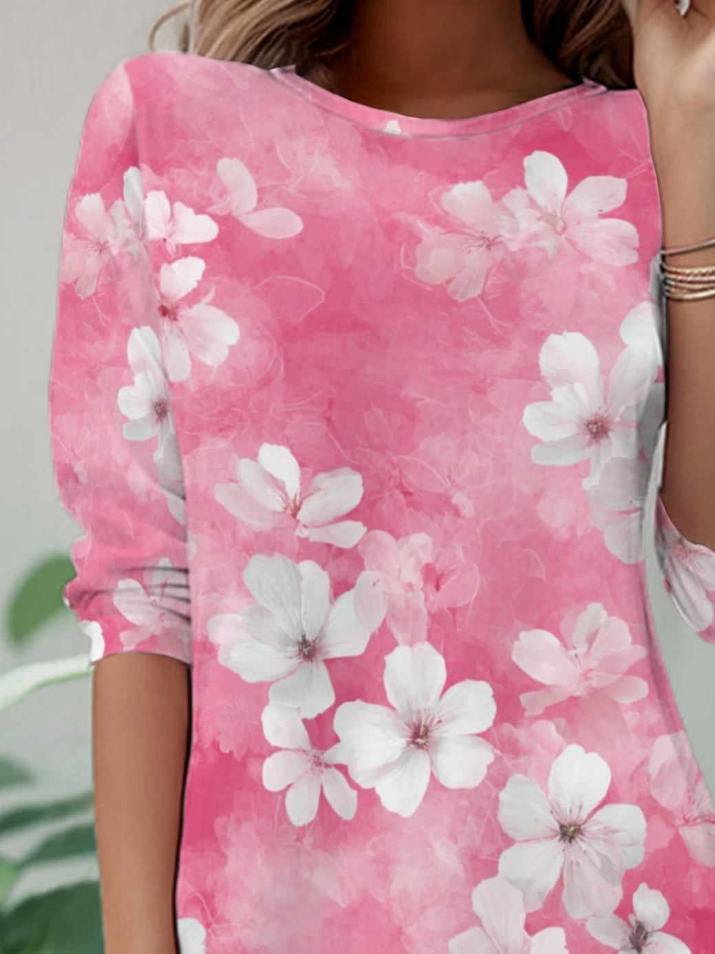Women's Long Sleeve T-shirt Spring/Fall Pink Floral Jersey Crew Neck Daily Going Out Casual Top