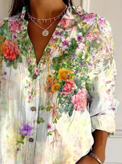 Women's Watercolor Art Floral Print Long Sleeve Shirt