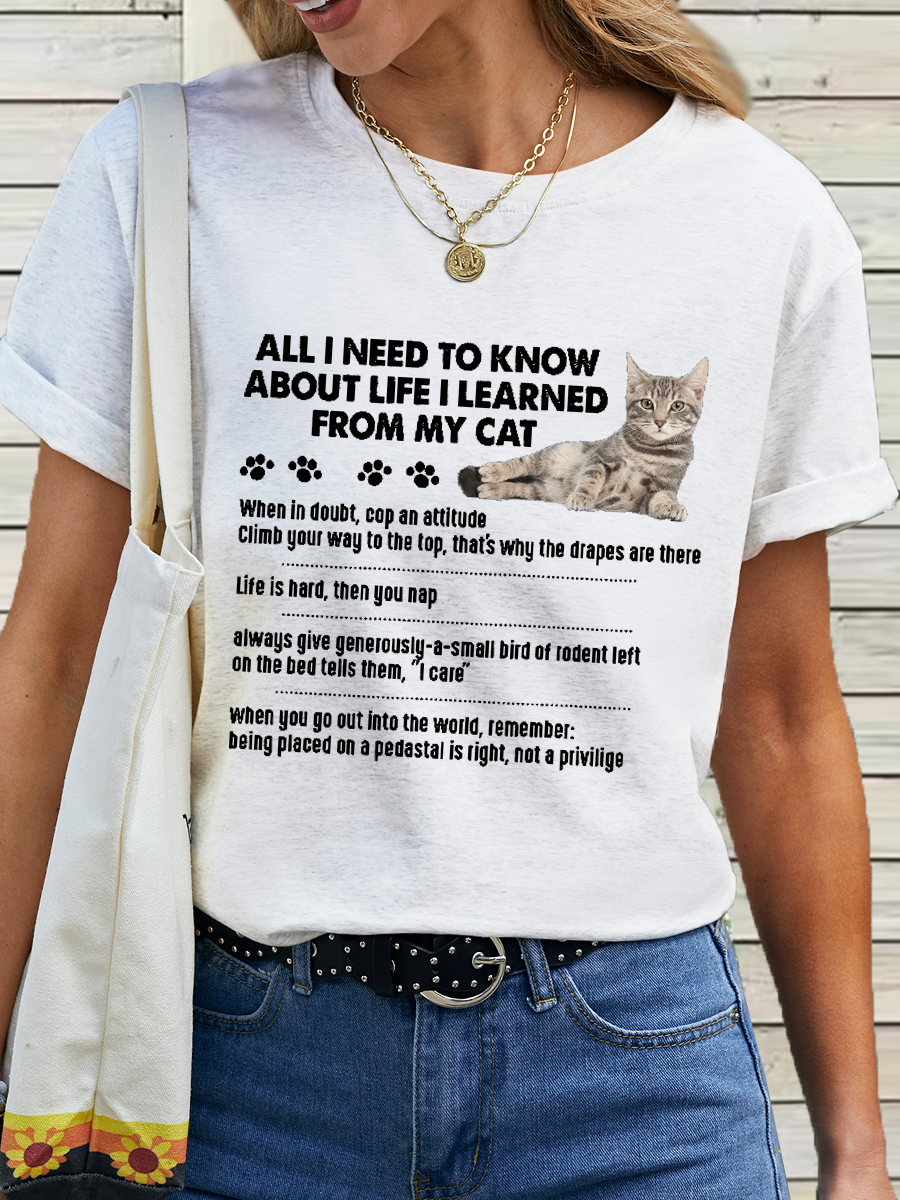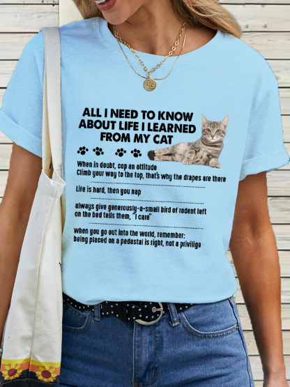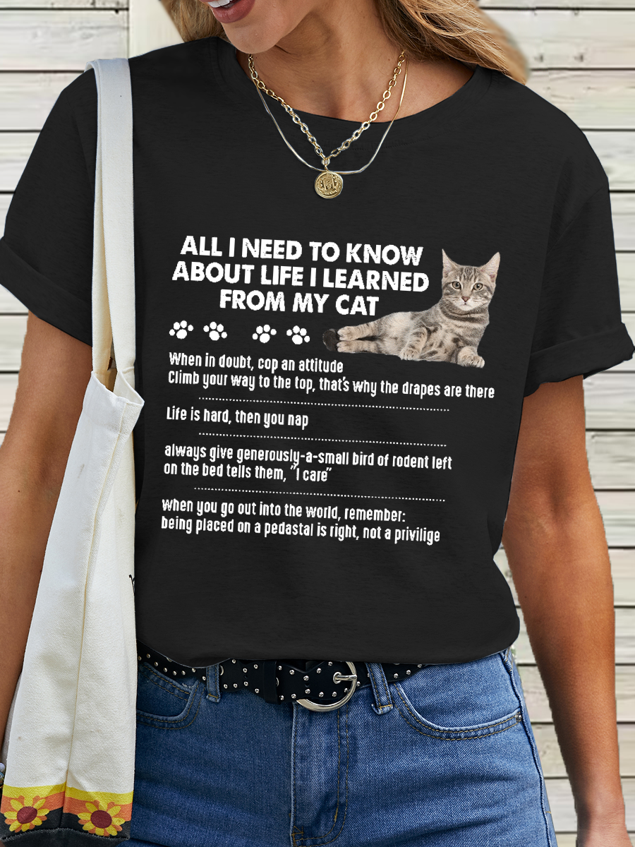 Women's Cotton All I Need To Know About Life I Learned From My Cat T-Shirt
