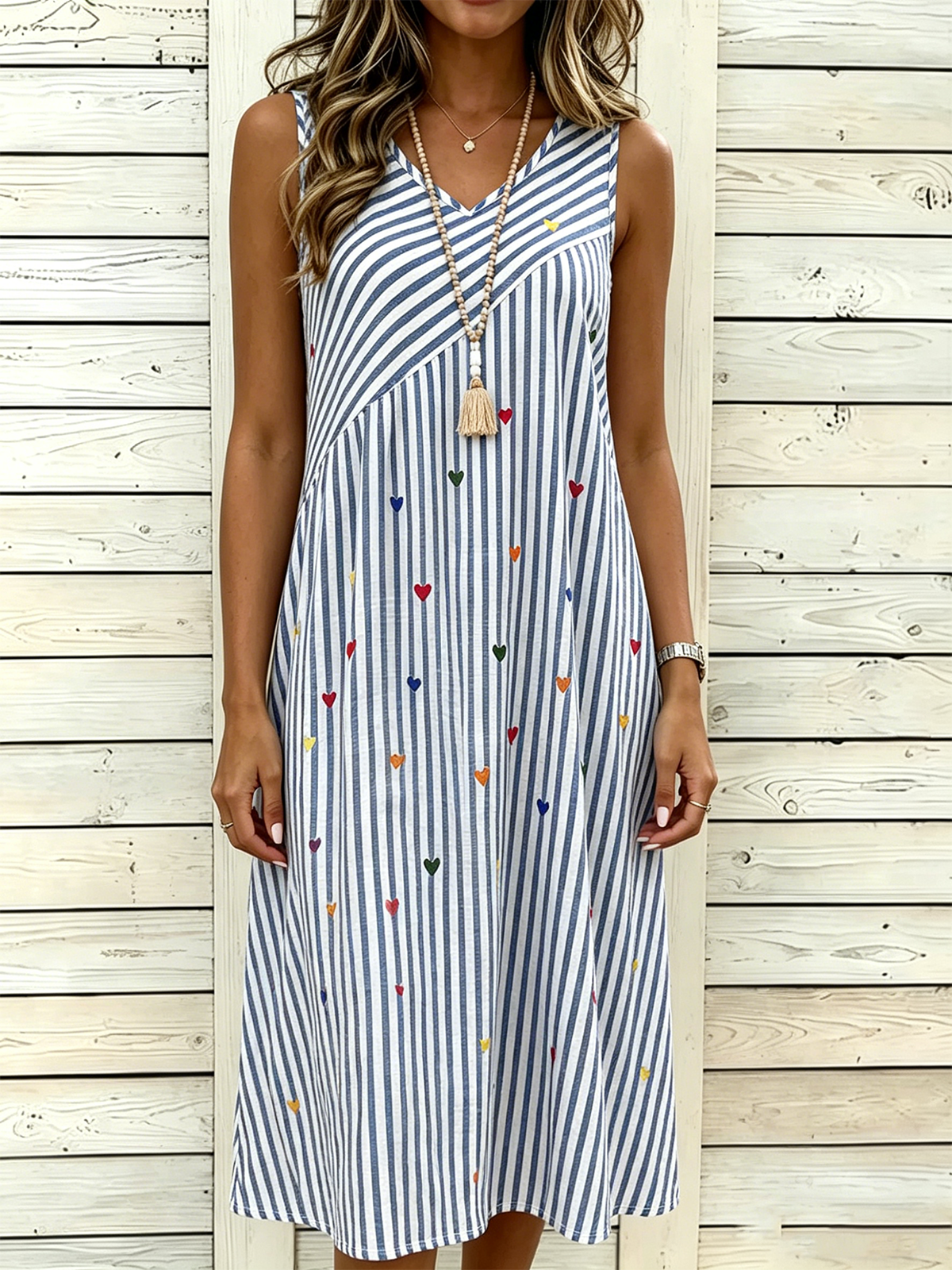 Cotton Colorful Leaf Printing V Neck Sleeveless Summer Vacation Casual Dress