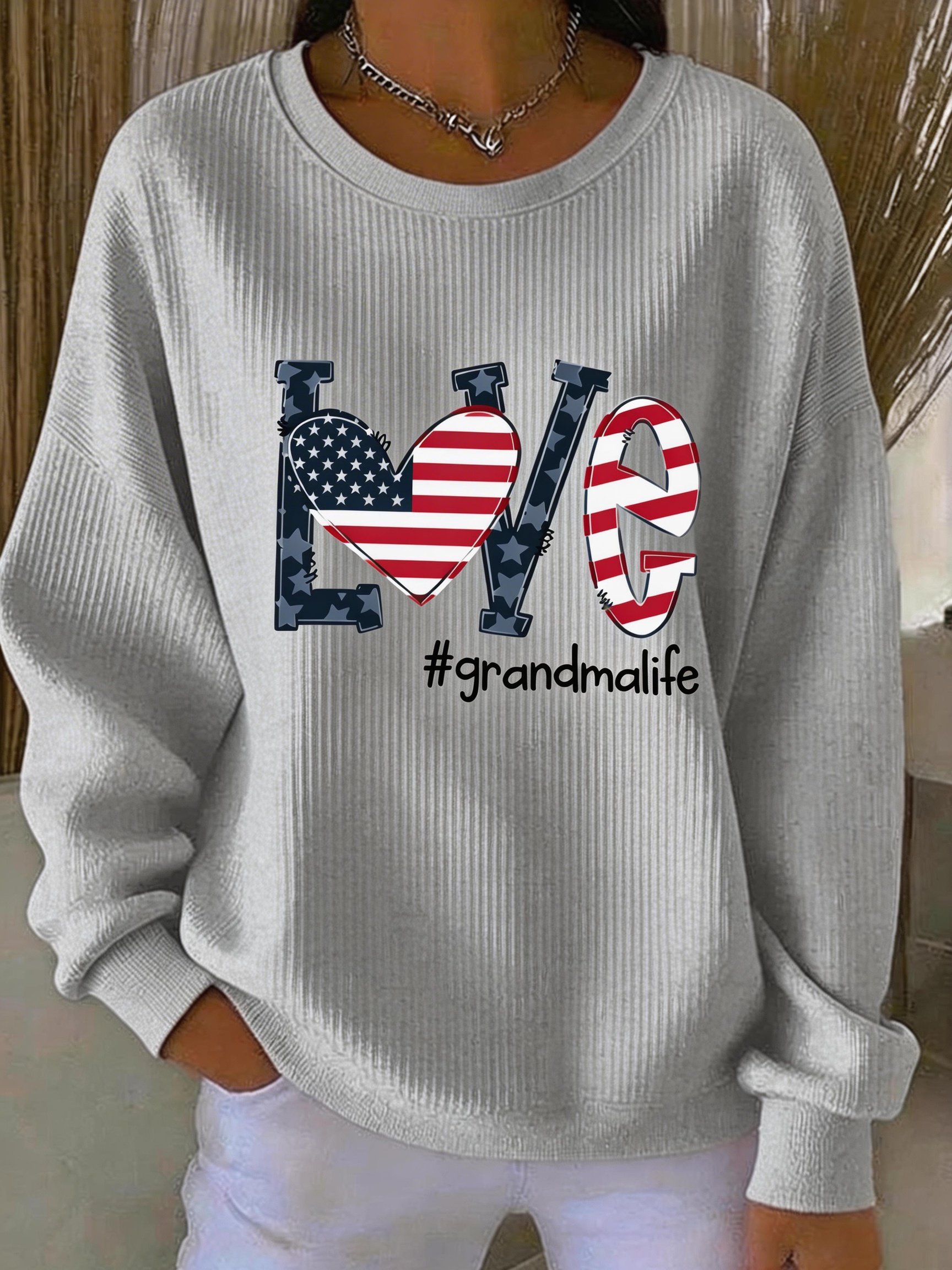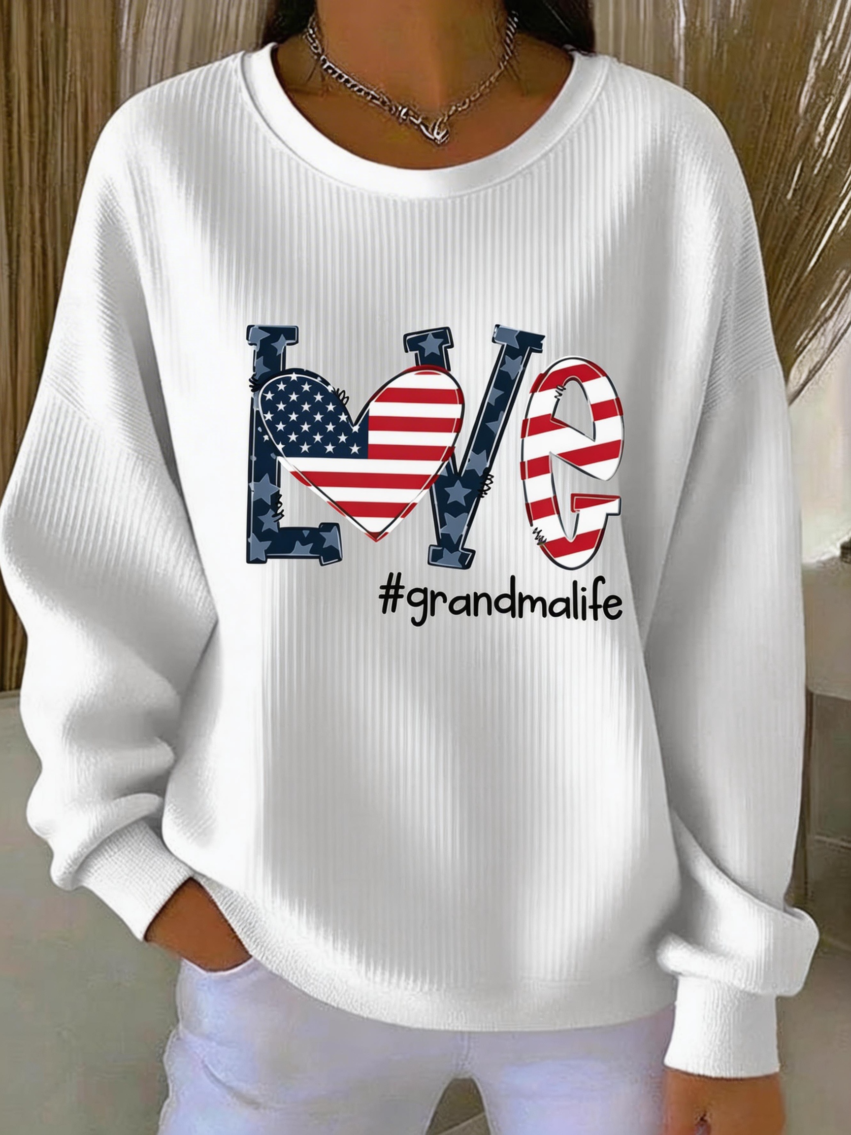 Letter Pattern Crew Neck Loose Casual Sweatshirt