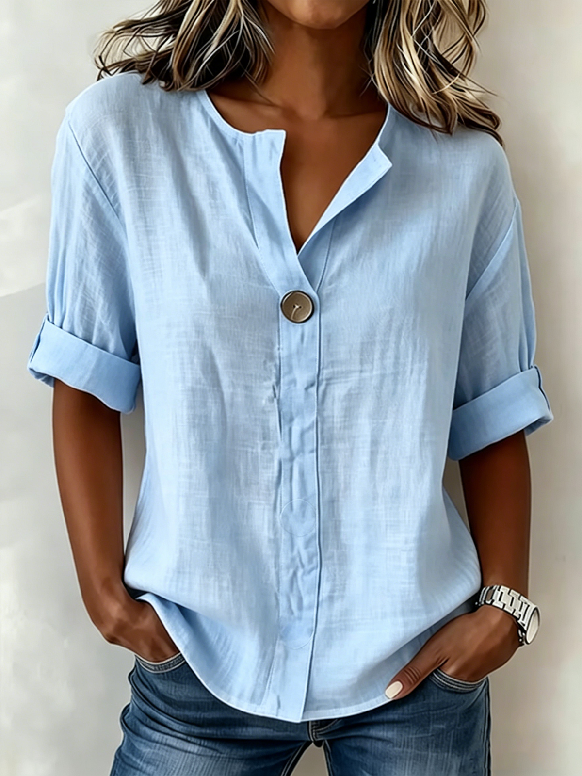 Elegant Cotton And Linen Crew Neck Loose Shirt