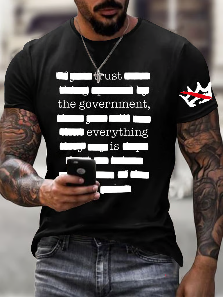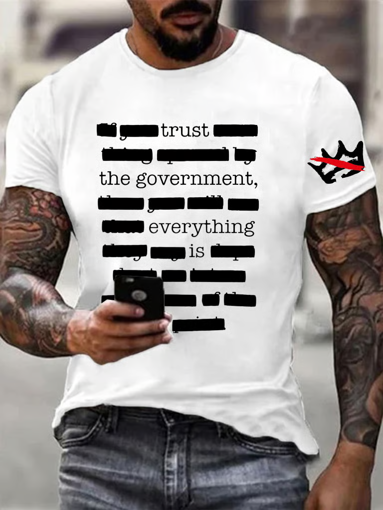 Men's Everything Is Fine Trust Your Government Redacted Print Funny Political Meme T-Shirt