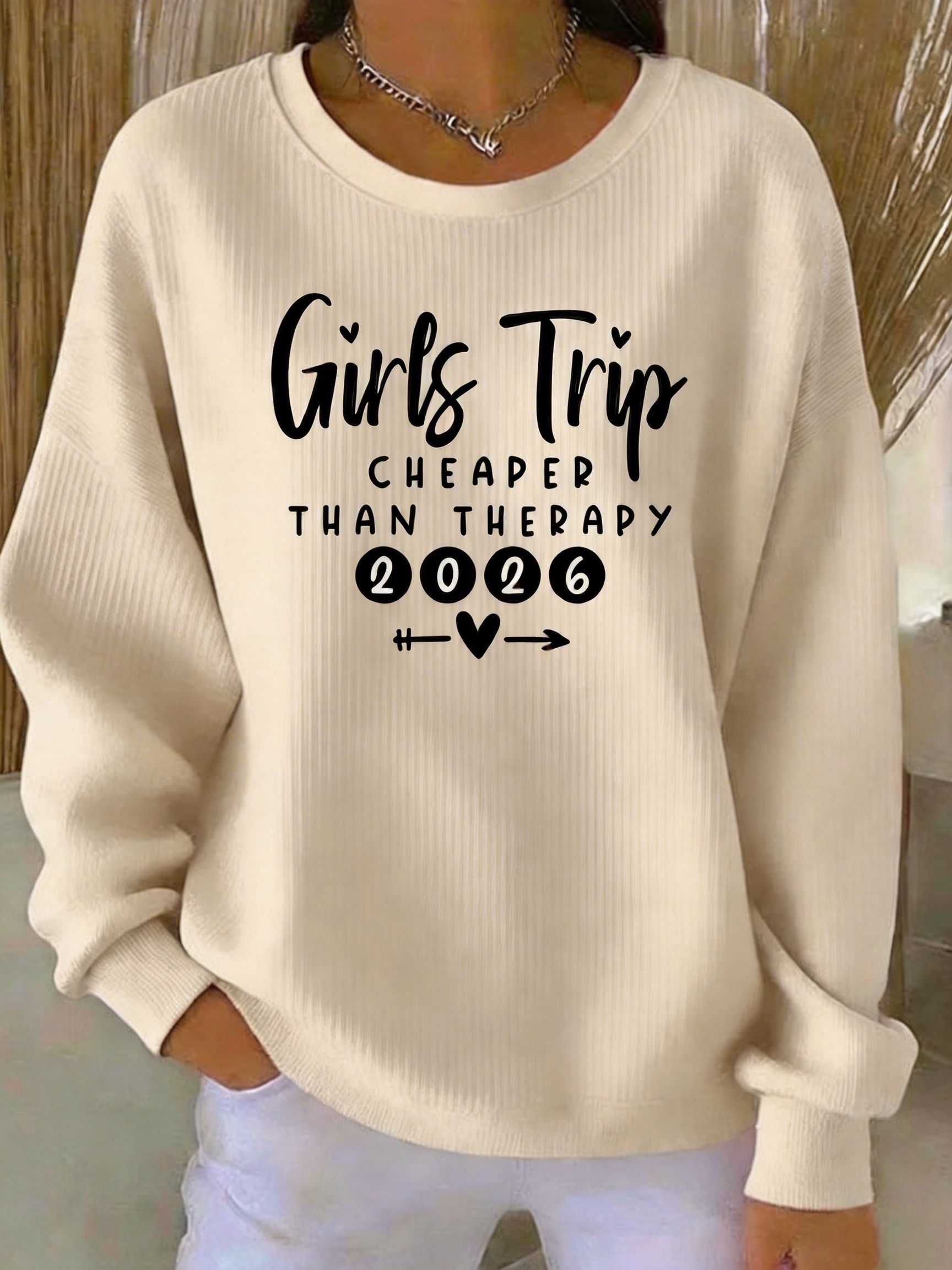 Letter Pattern Casual Crew Neck Loose Sweatshirt