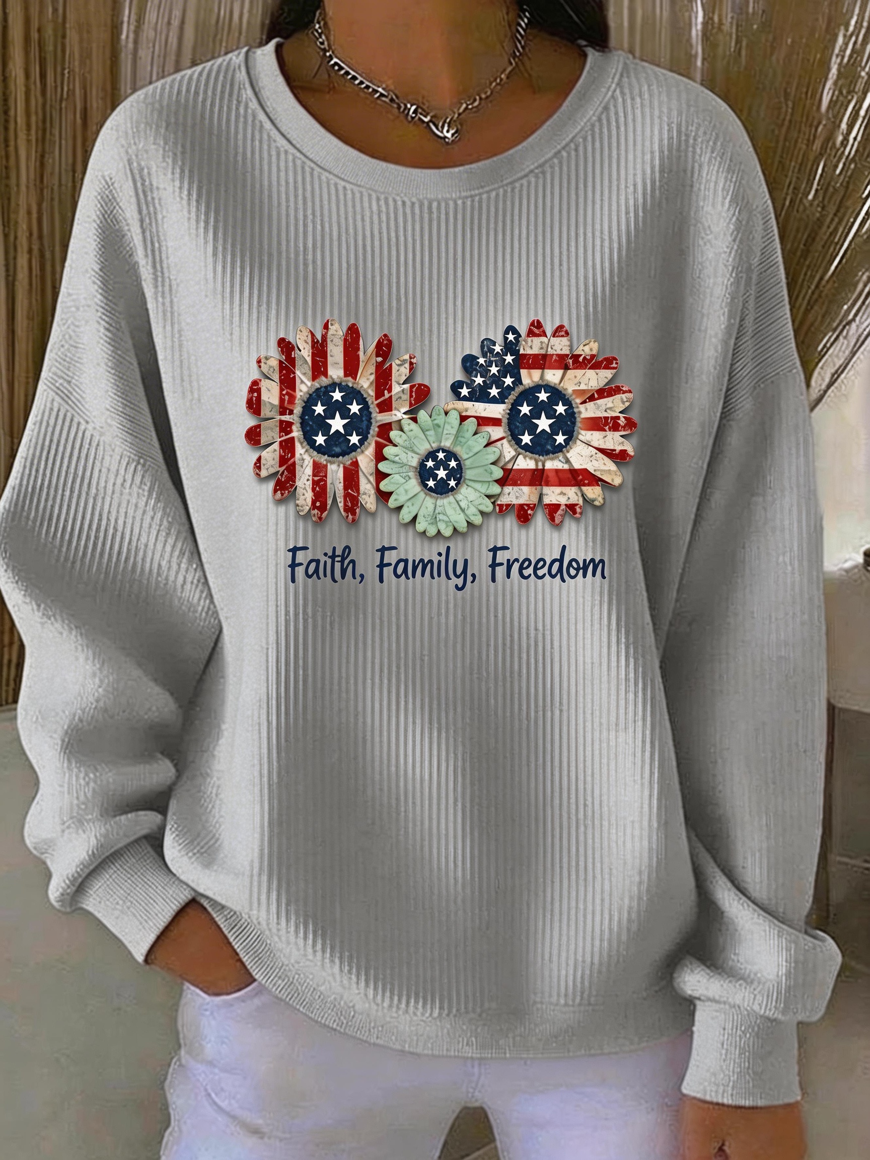Simple Crew Neck Loose Independence Day Sweatshirt
