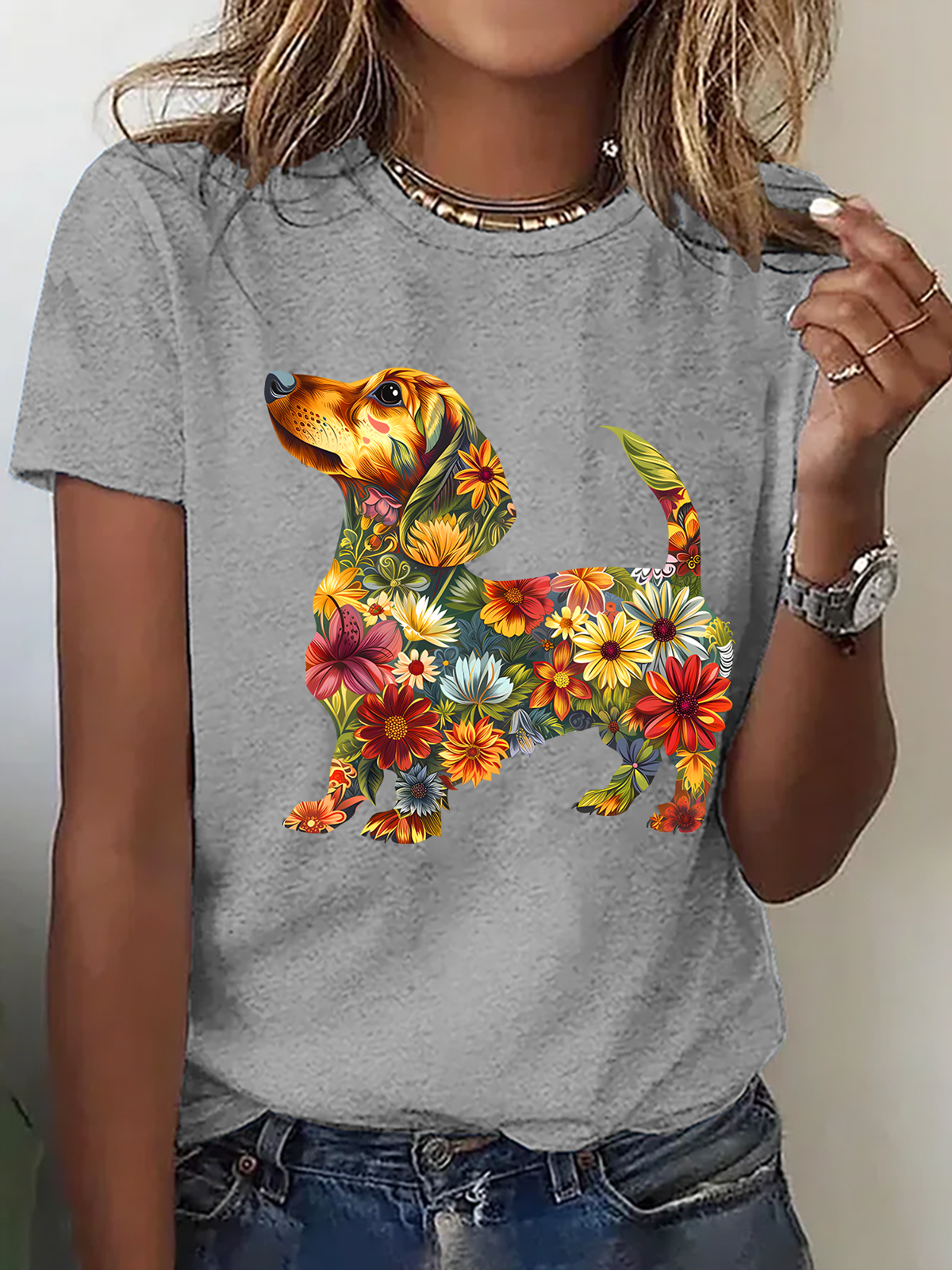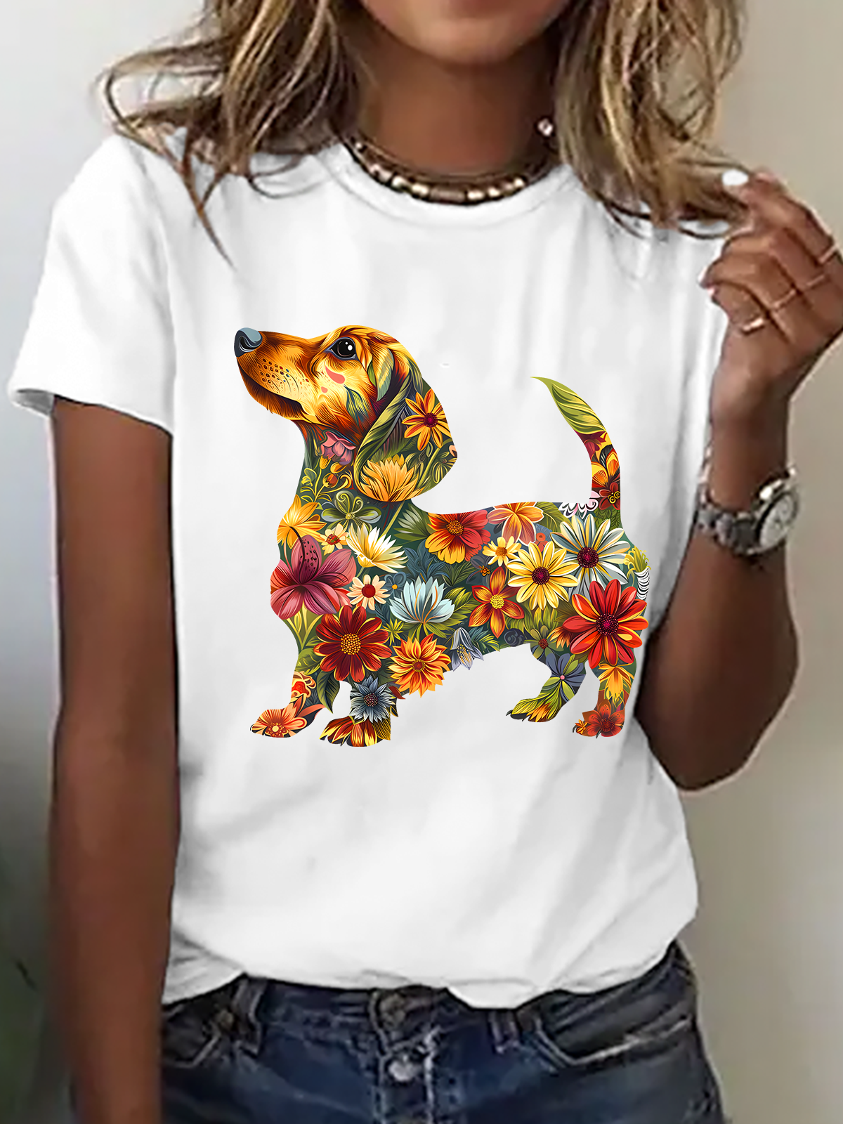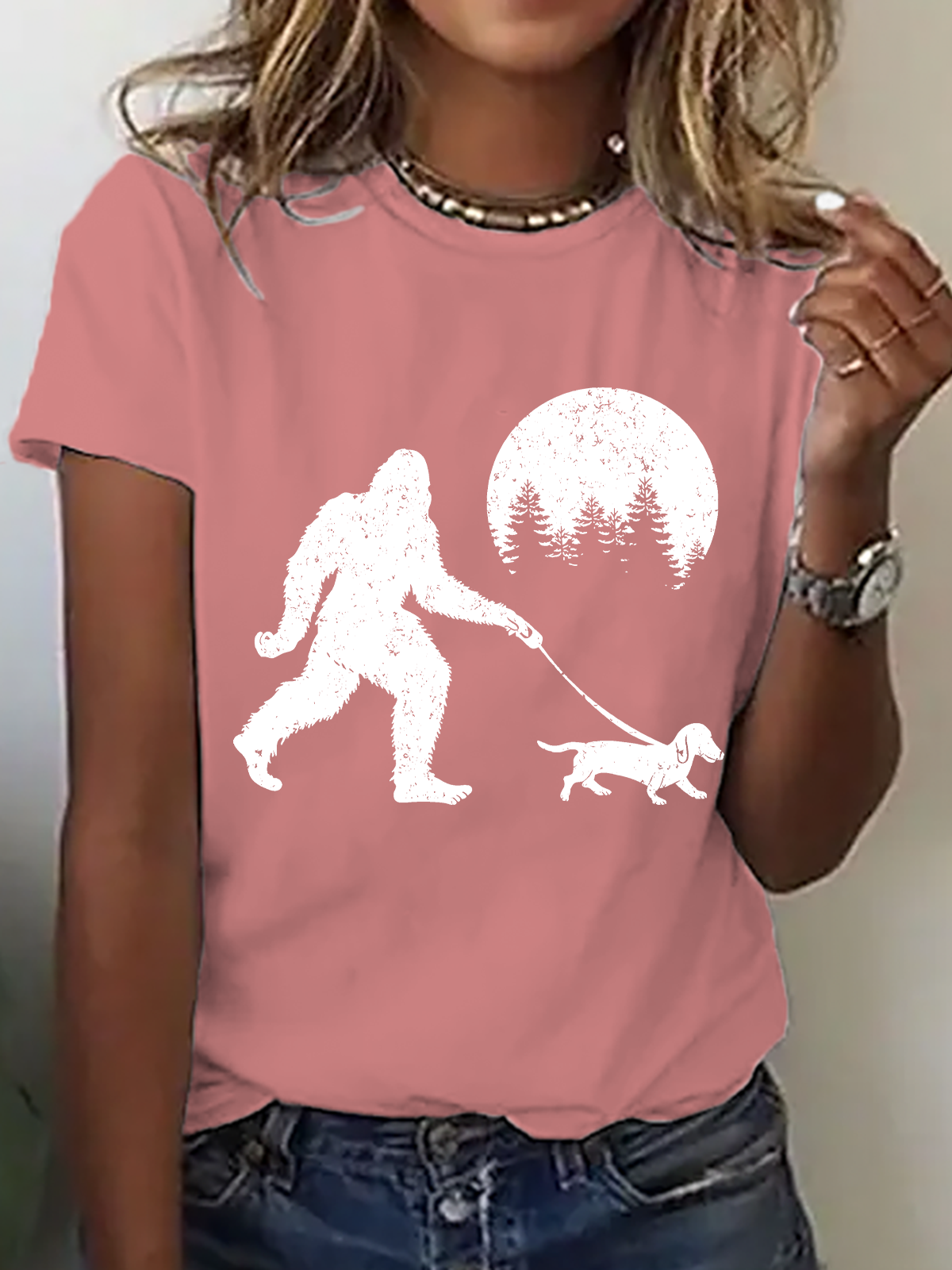 Bigfoot Walking Wiener Dog Cotton T-Shirtw
